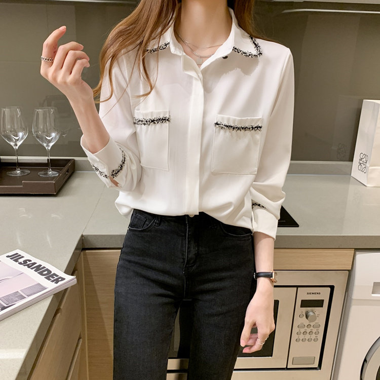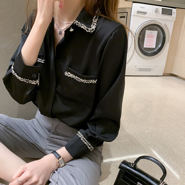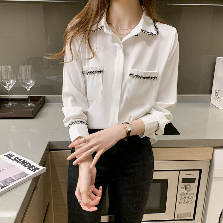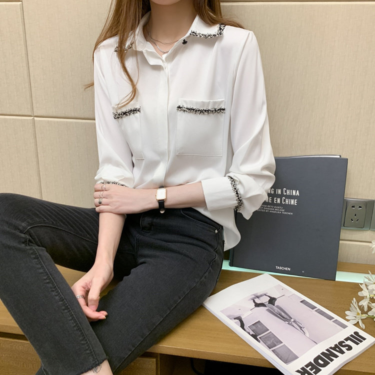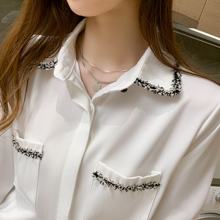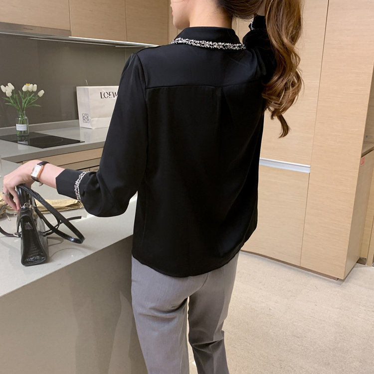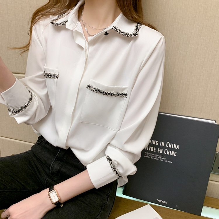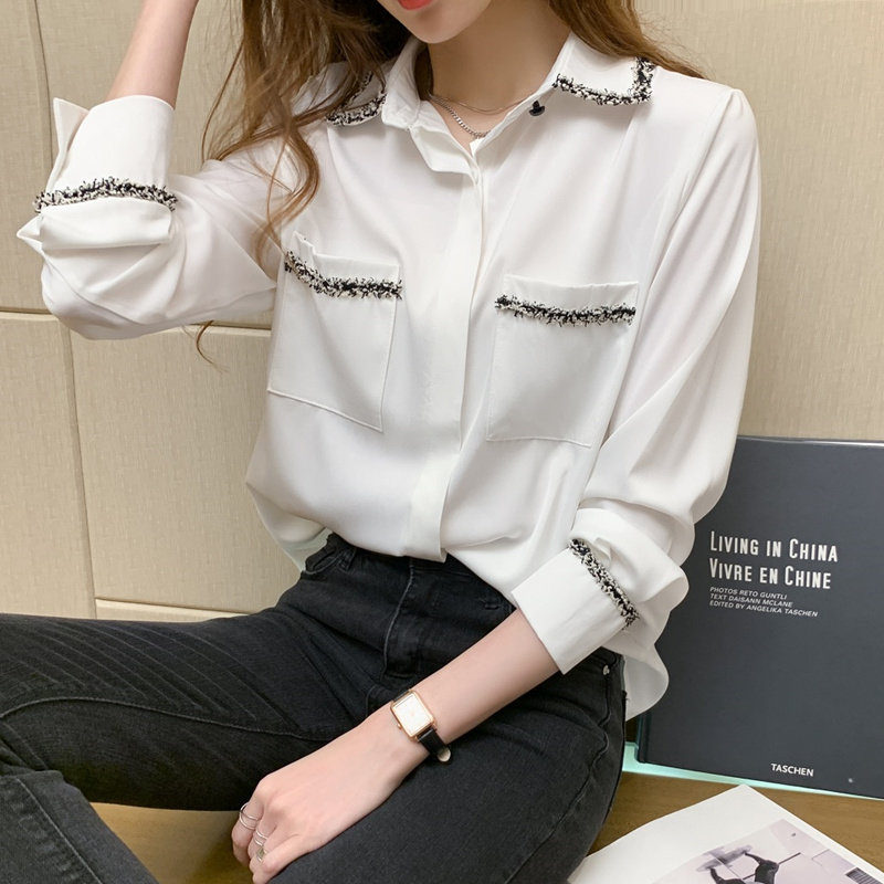 Шифоновый осенний дизайнерский модный лонгслив, рубашка, коллекция 2023, тренд сезона, свободный крой