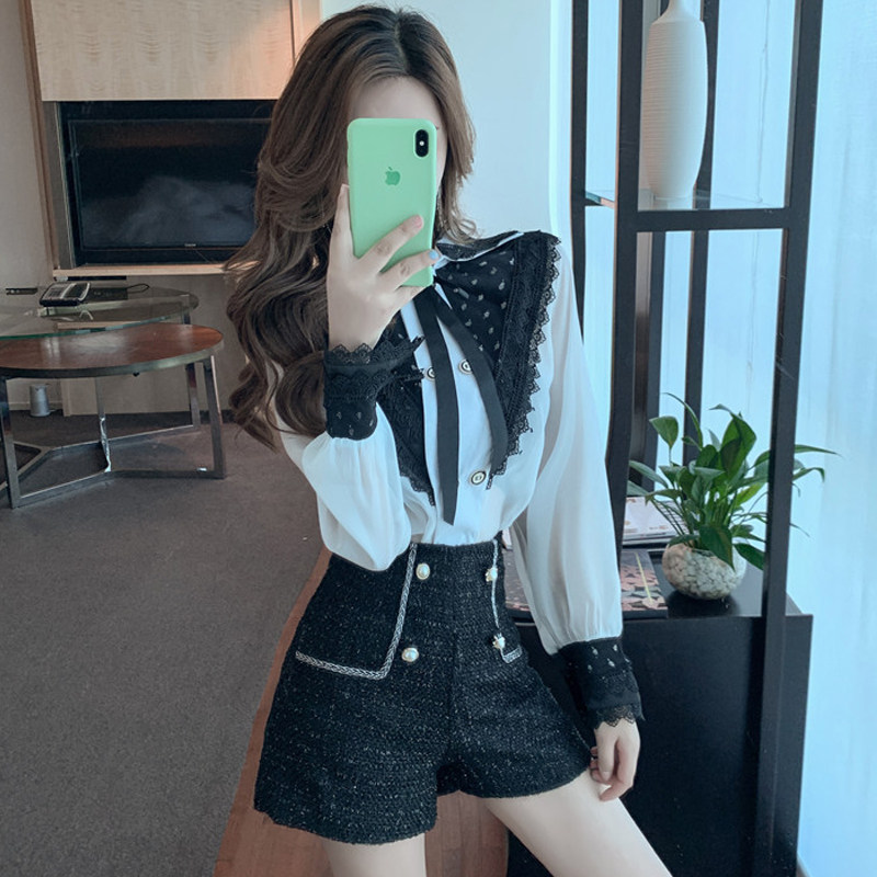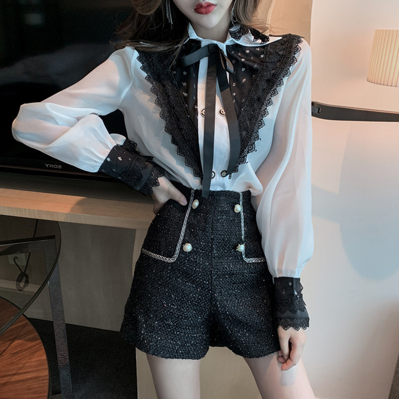 Кружевная рубашка, осенний элитный дизайнерский лонгслив, французский стиль, 2020, в западном стиле, тренд сезона