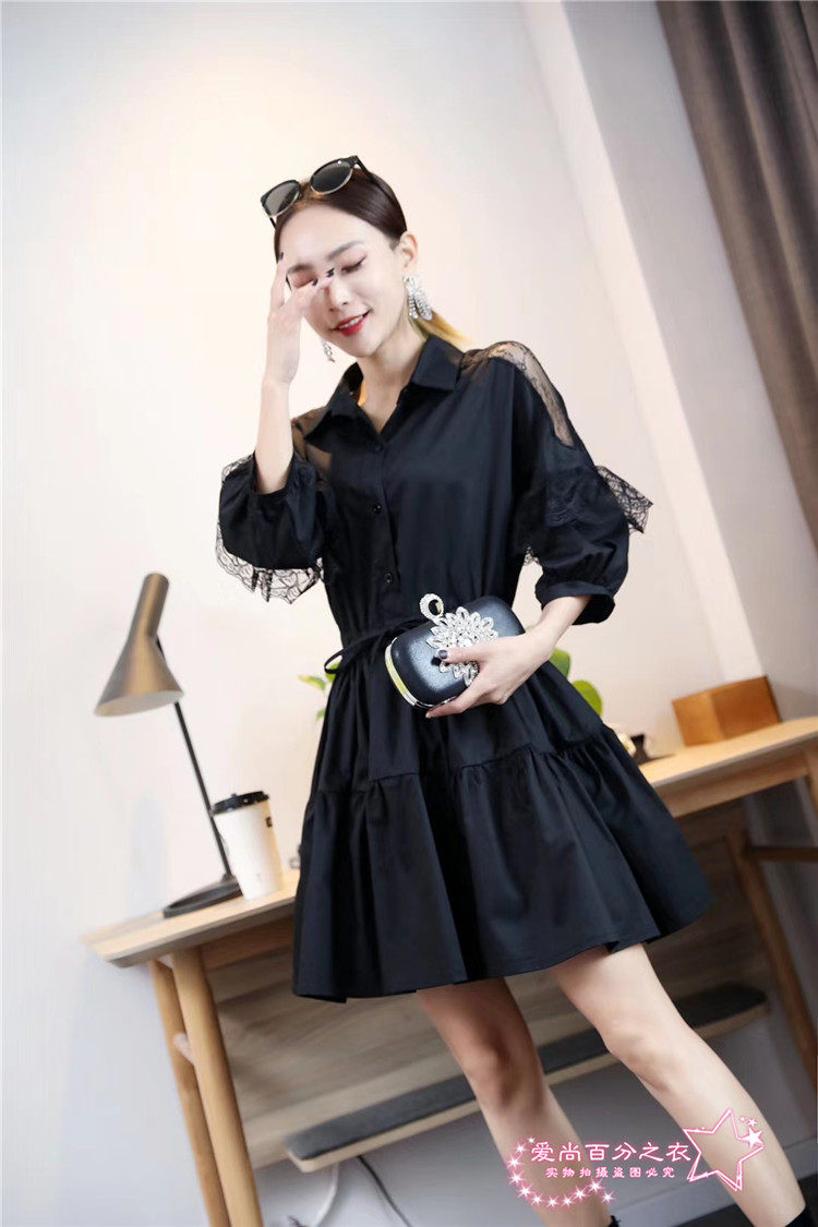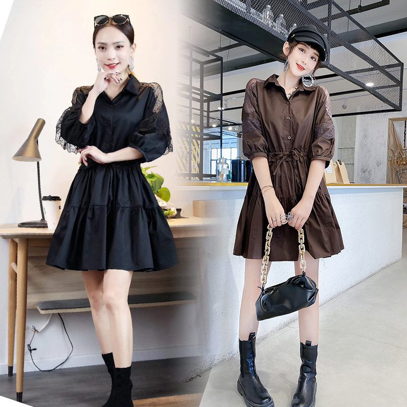 Осенняя рубашка, приталенный длинный корсет, дизайнерский фонарь, футболка, в корейском стиле, средней длины, тренд сезона
