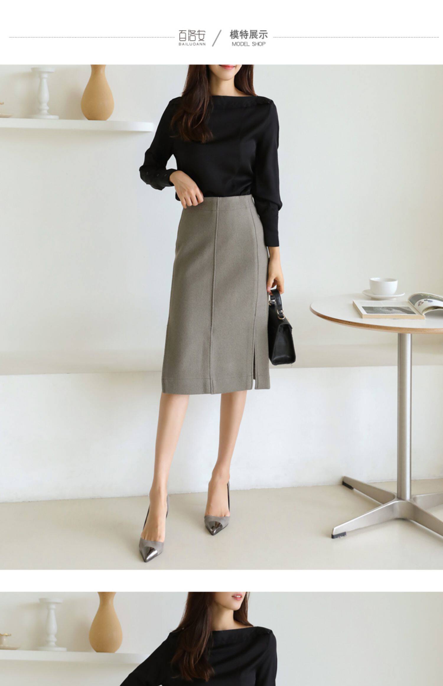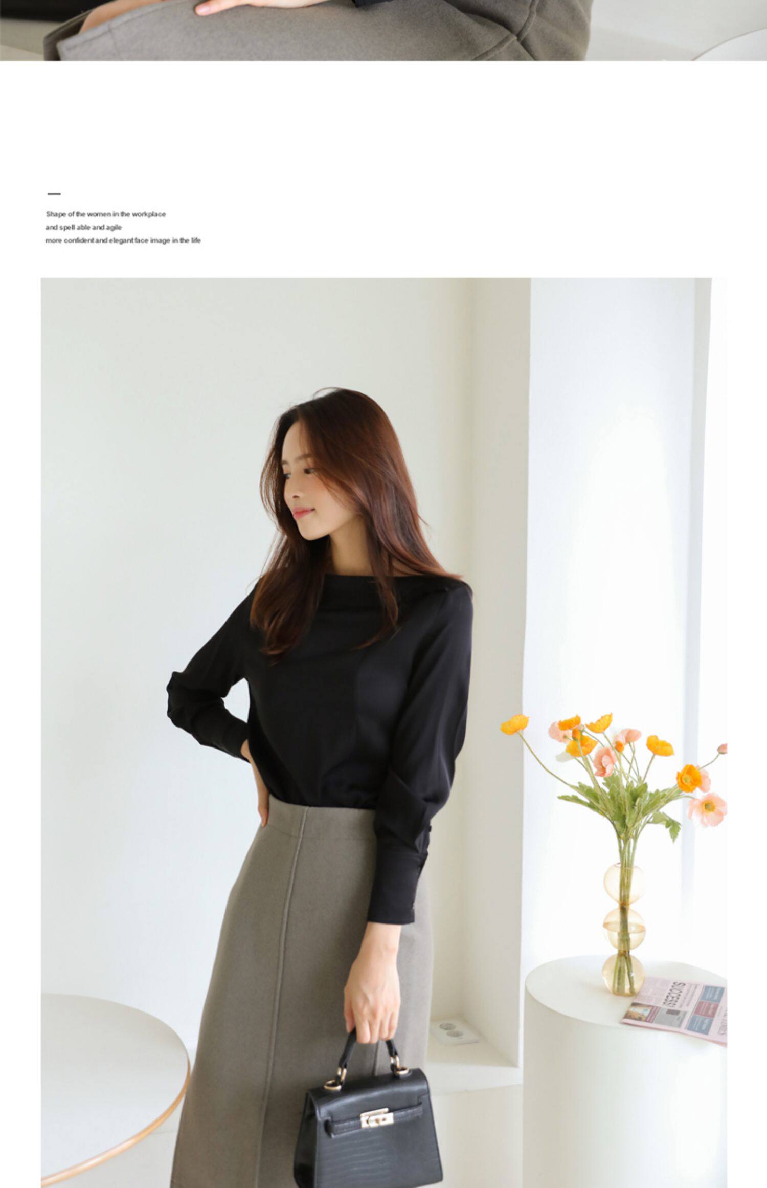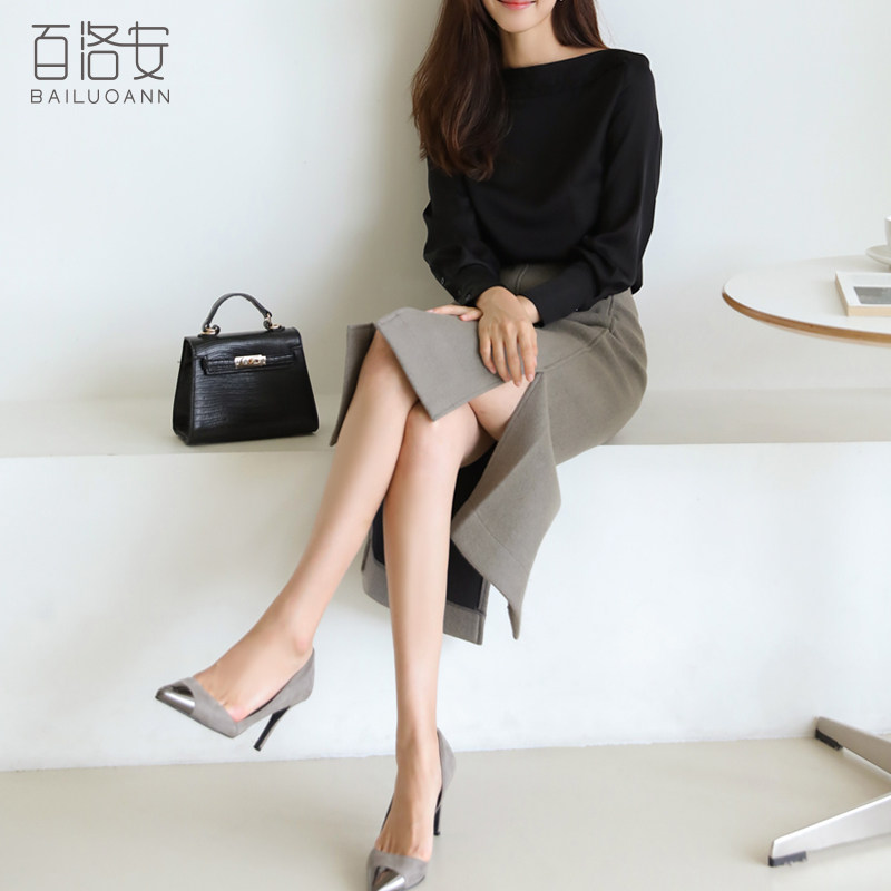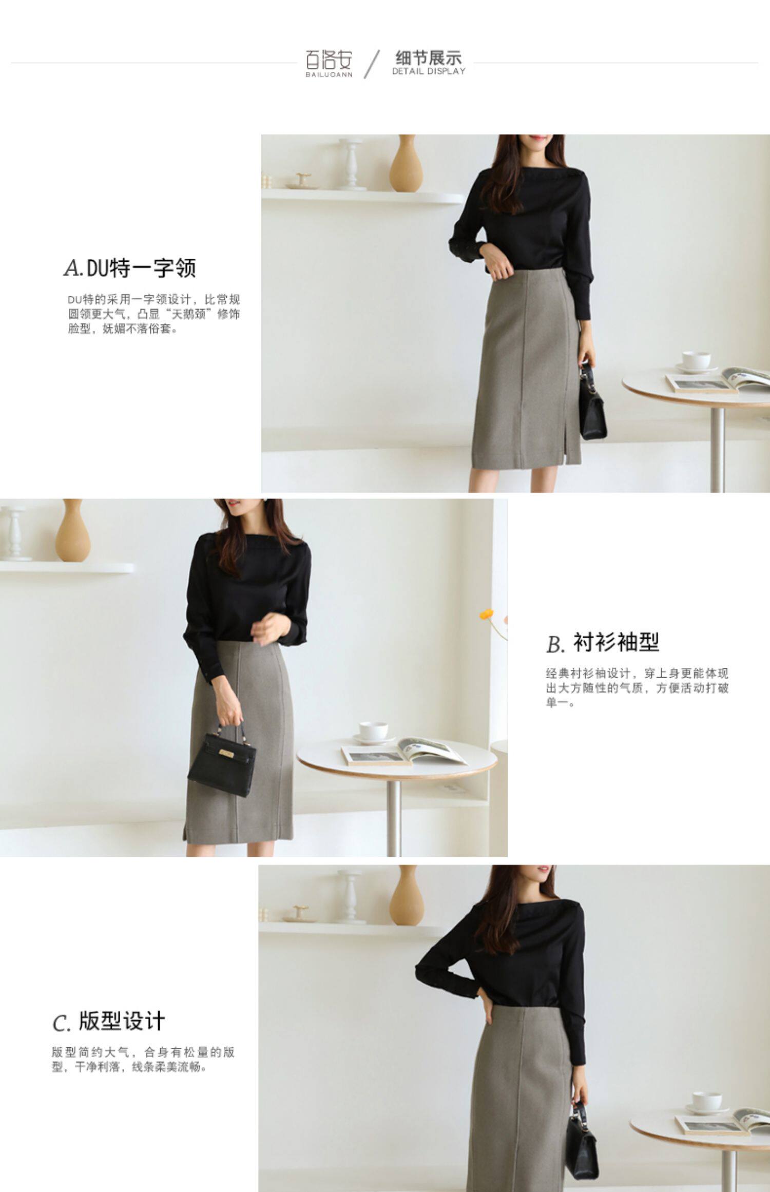 百洛安 Осенняя рубашка, лонгслив, нарукавники, открытые плечи, в корейском стиле, по фигуре