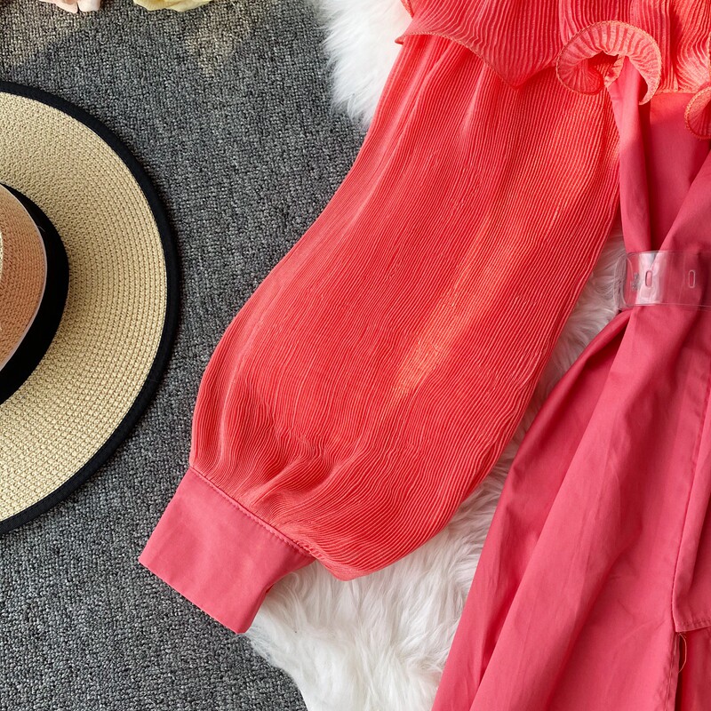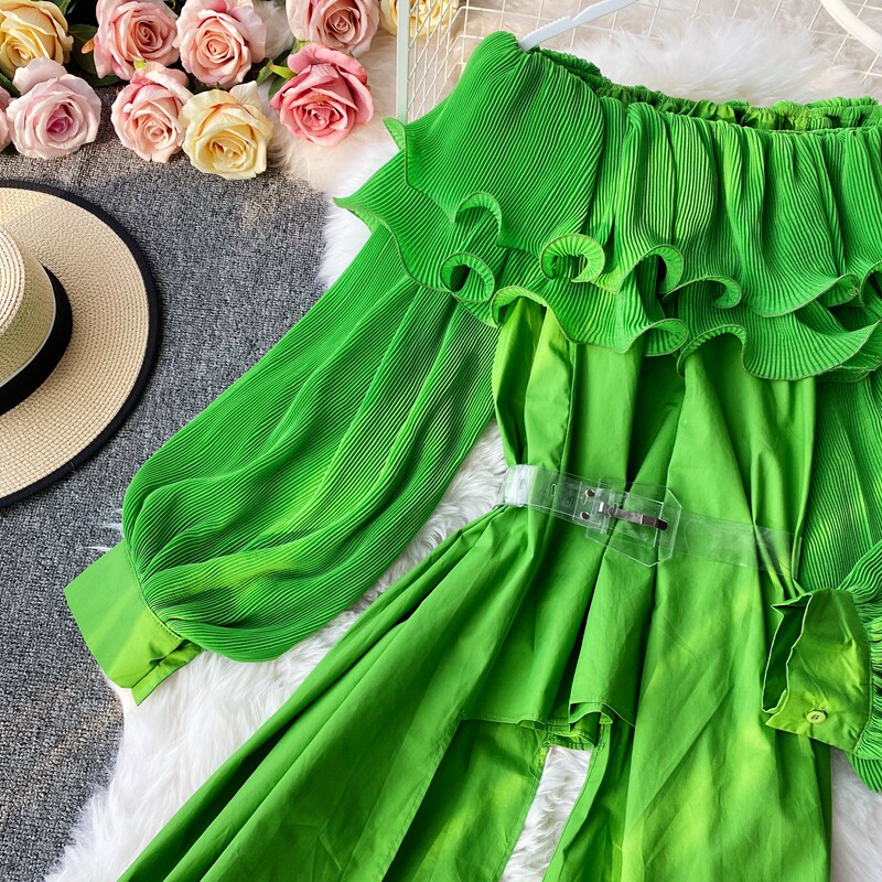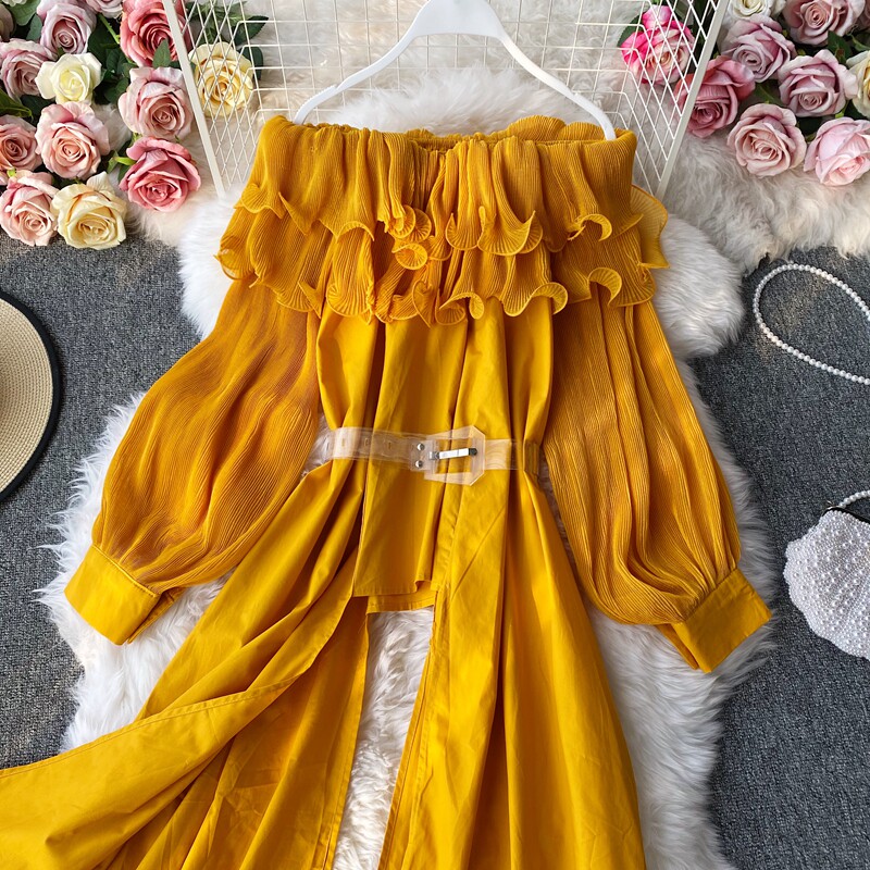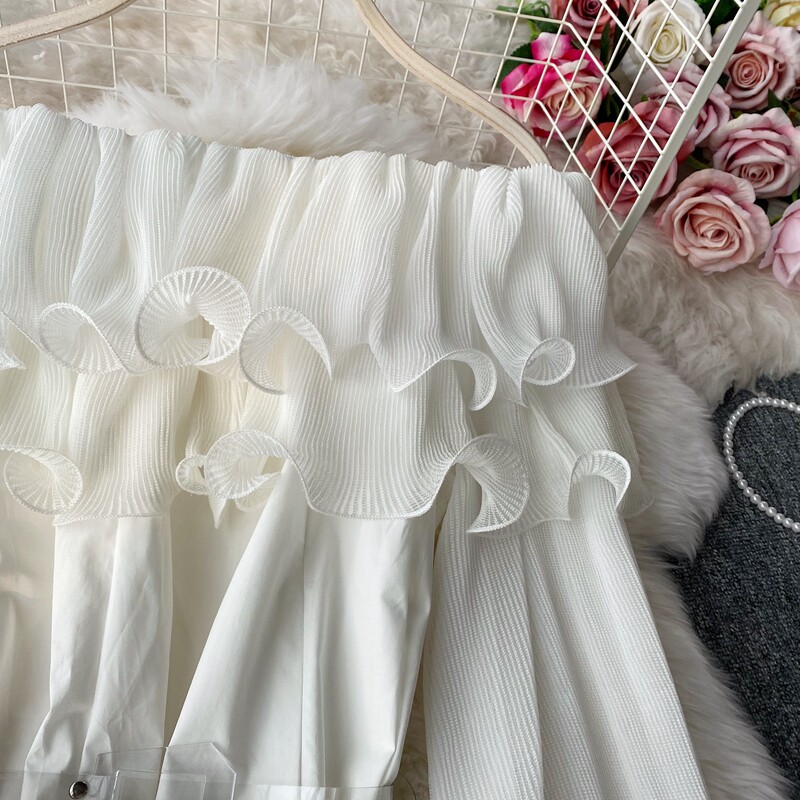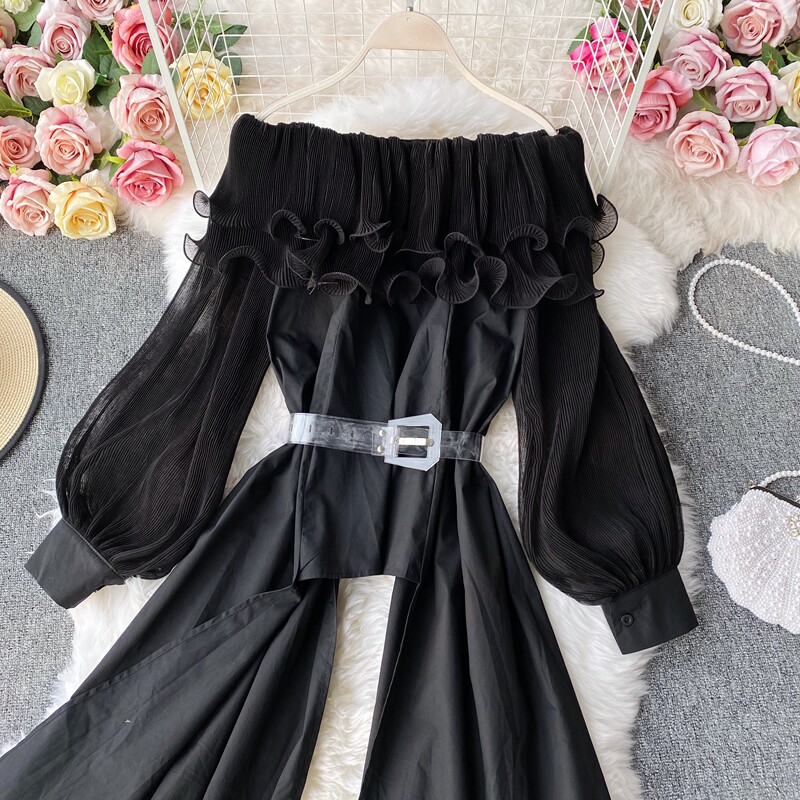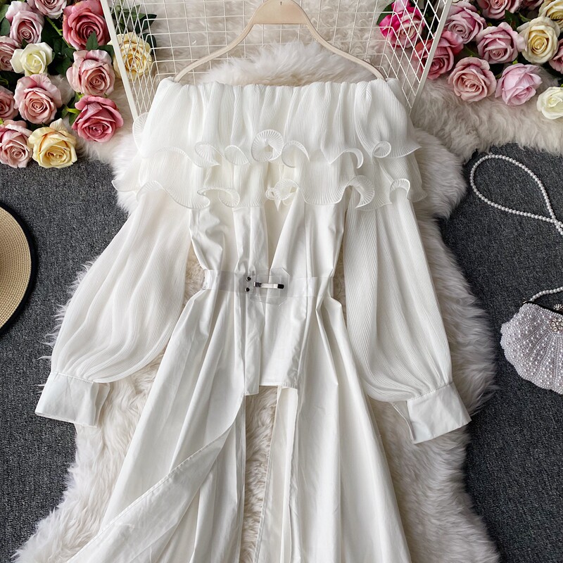 Осенняя ретро модная длинная рубашка, французский стиль, открытые плечи, средней длины