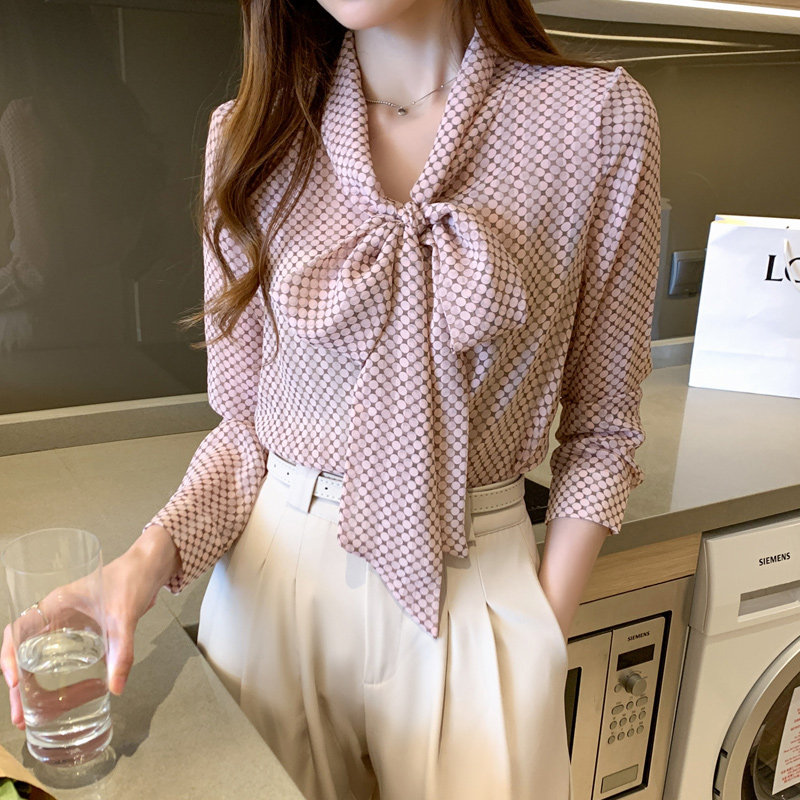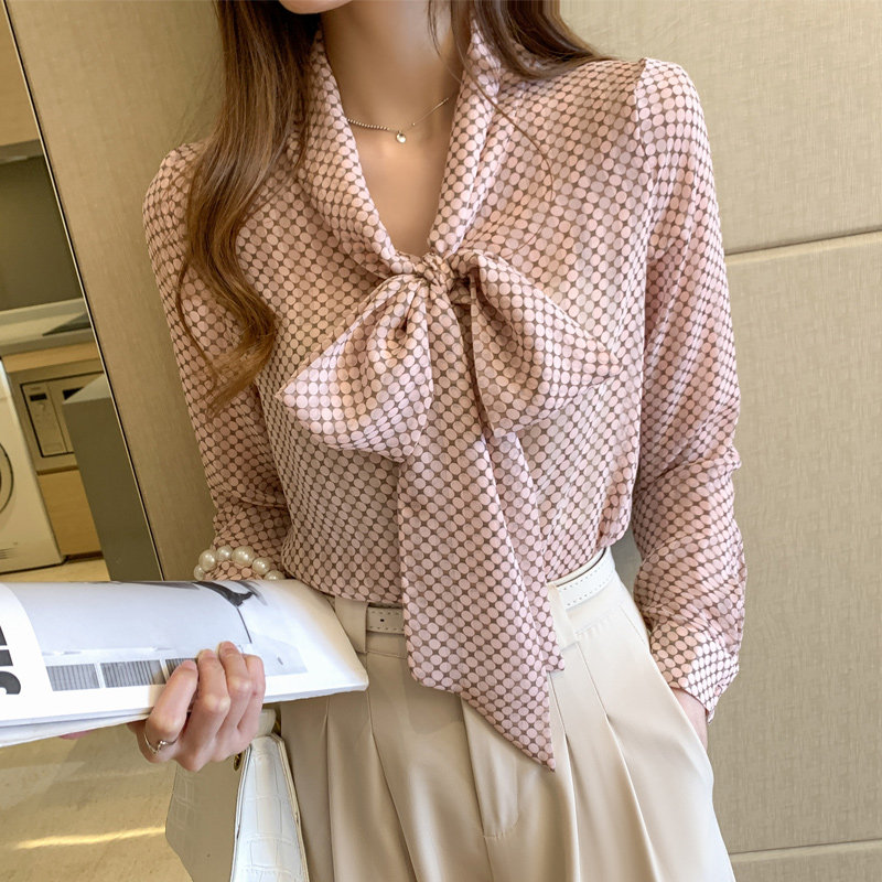 Рубашка с бантиком, осенний шифоновый лонгслив, коллекция 2022, оверсайз