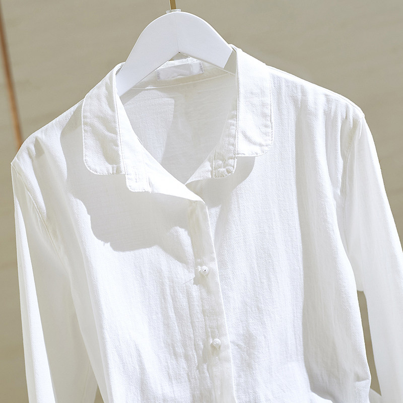 Осенняя рубашка, лонгслив, из хлопка и льна, 2023, в корейском стиле, оверсайз