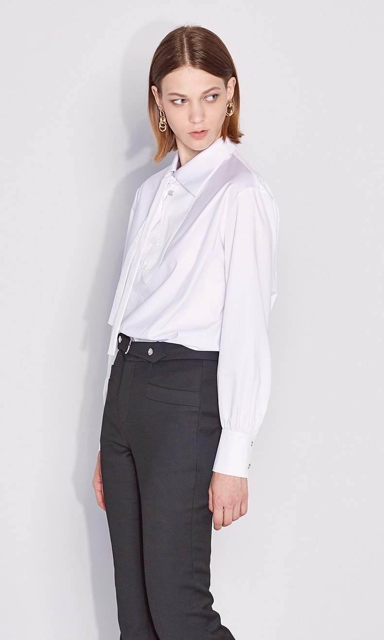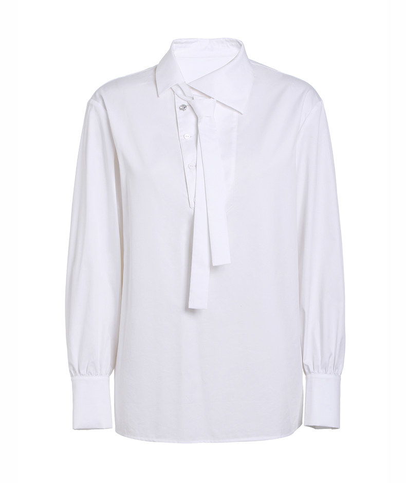 Сплетенный дизайн галстука создает красивую рубашку в стиле BF.Имитация бриллианта украшена богатыми деталями, полными изобретательности, а рубашка раскрывает многогранное очарование.
