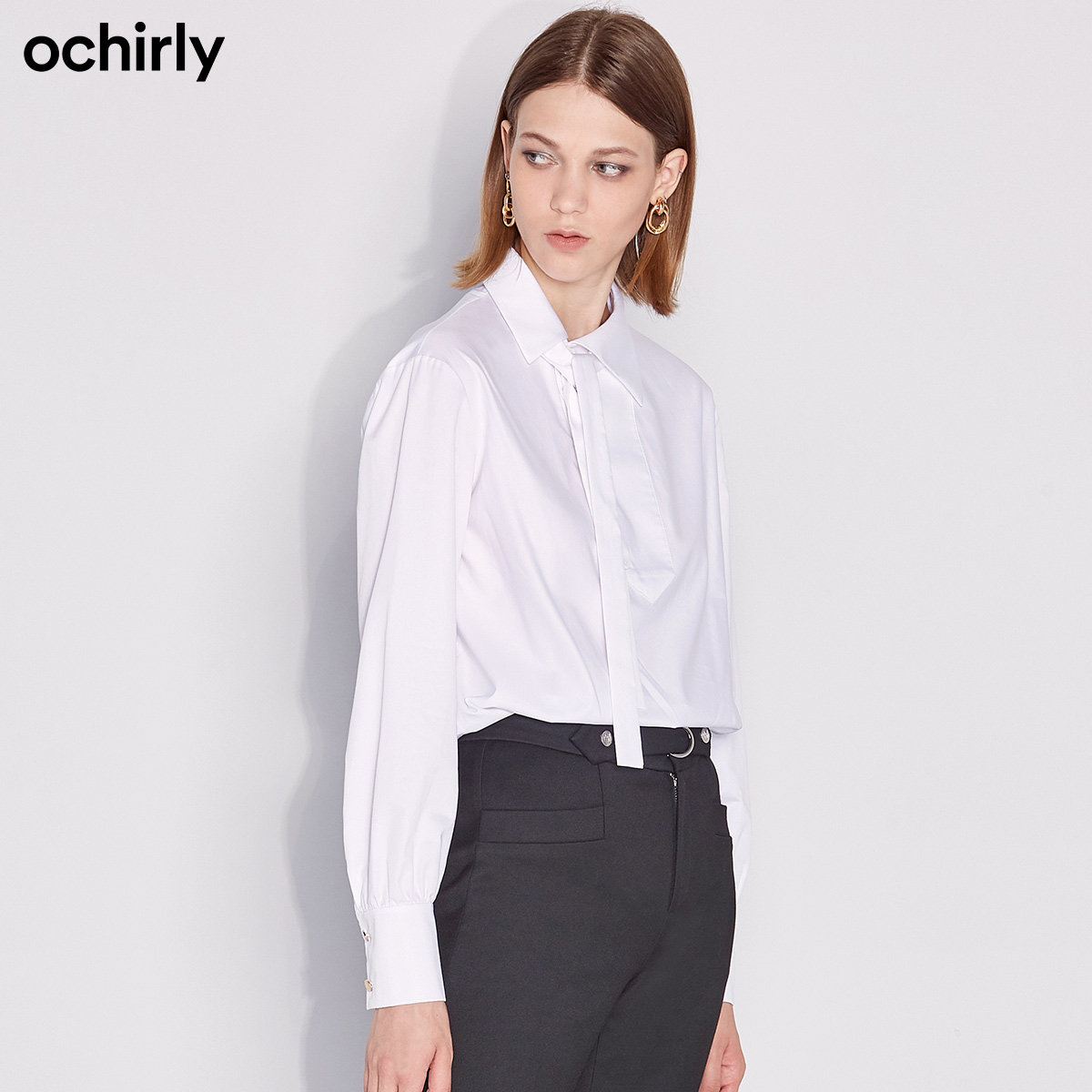 Черная серия лейбла OU Shili Spring и летняя штучатая пряжка с длинной рубашкой женская рубашка 1RH4017880