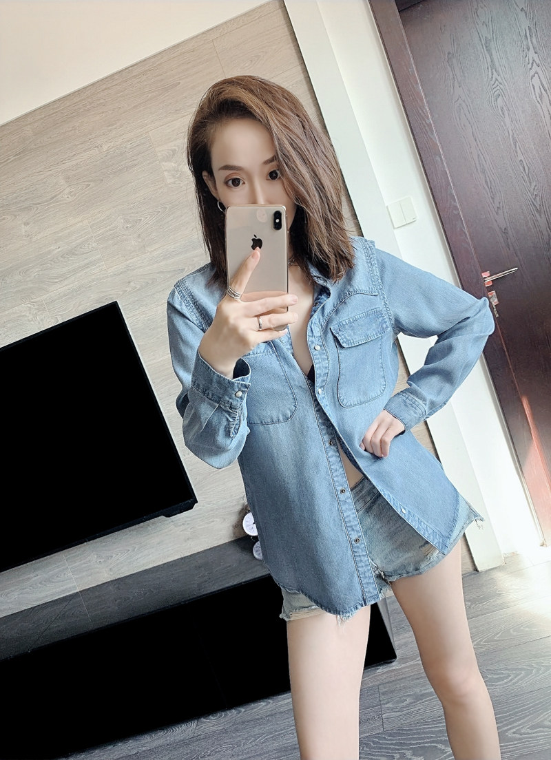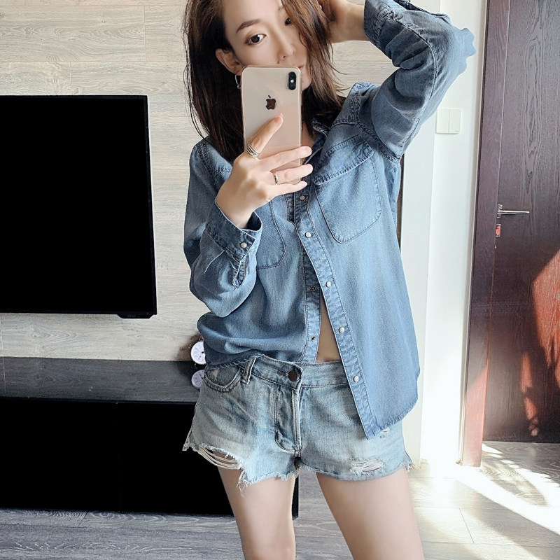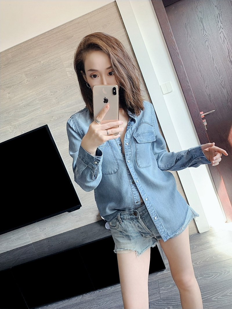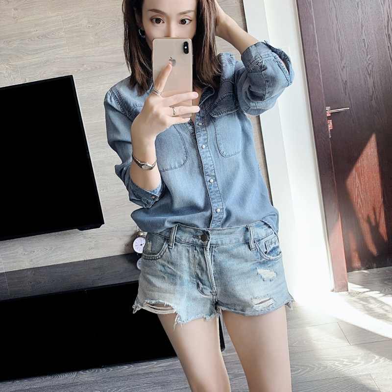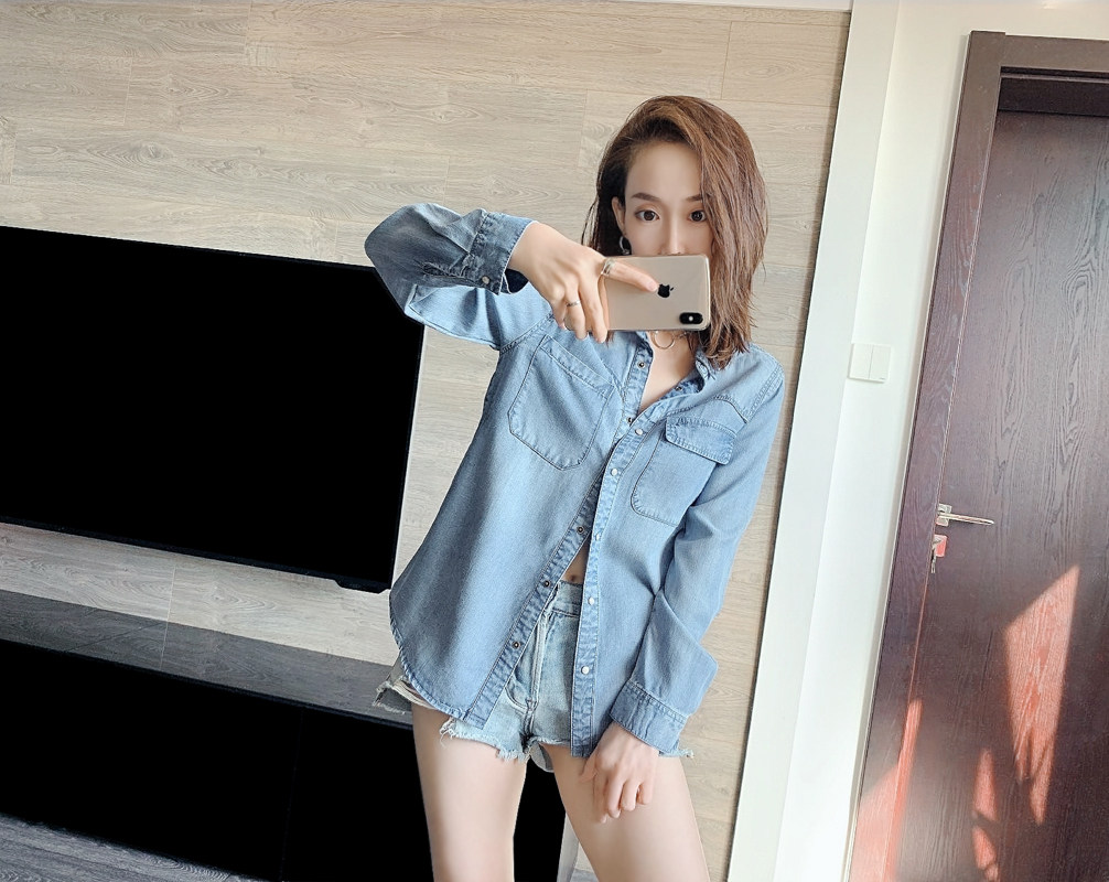 Дизайнерская асимметричная мягкая осенняя джинсовая рубашка, лонгслив для отдыха, тренд сезона