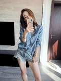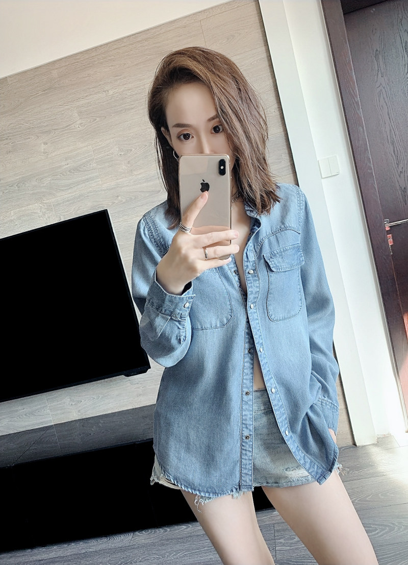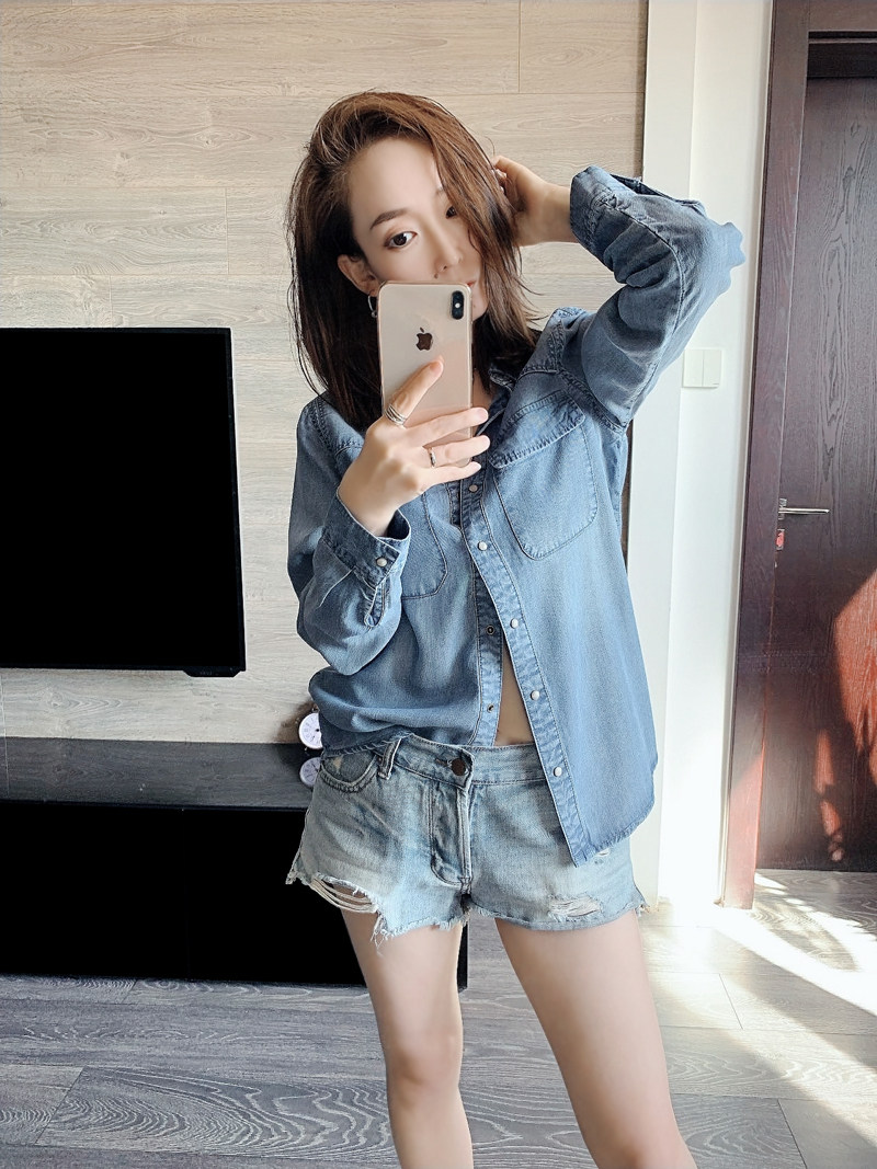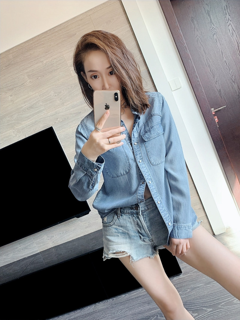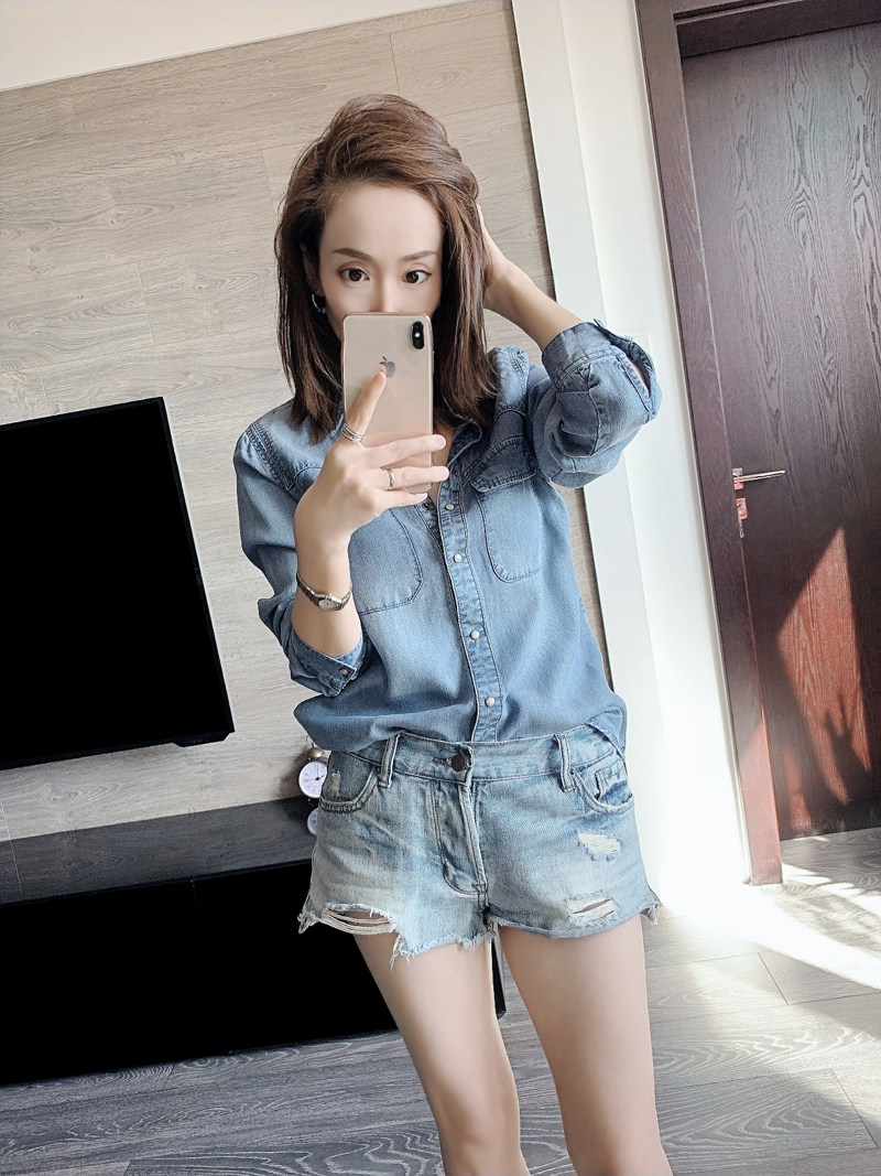 Дизайнерская асимметричная мягкая осенняя джинсовая рубашка, лонгслив для отдыха, тренд сезона