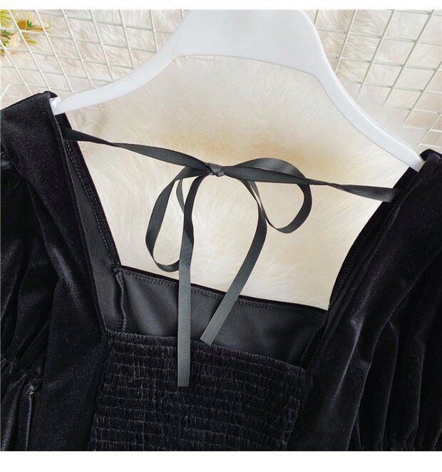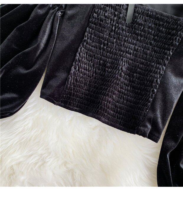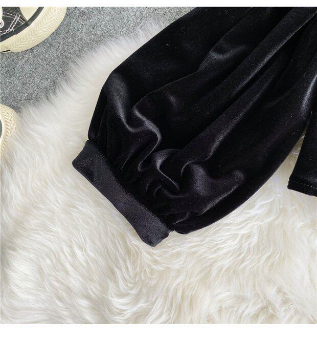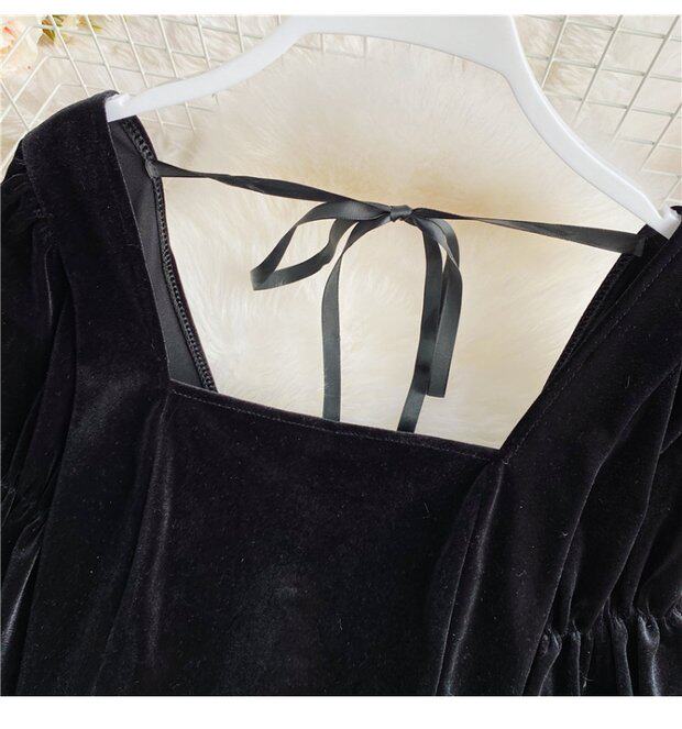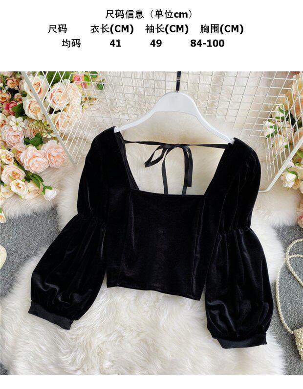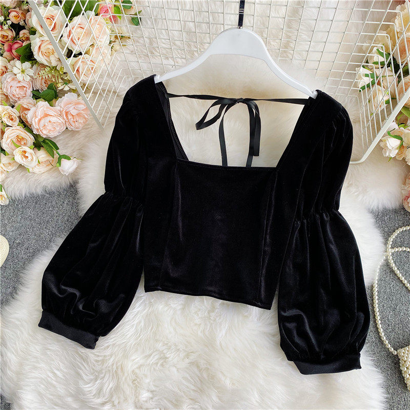 Ретро ремень, лонгслив, бархатная модная короткая утеплённая рубашка, французский стиль, квадратный вырез, рукава фонарики, в западном стиле