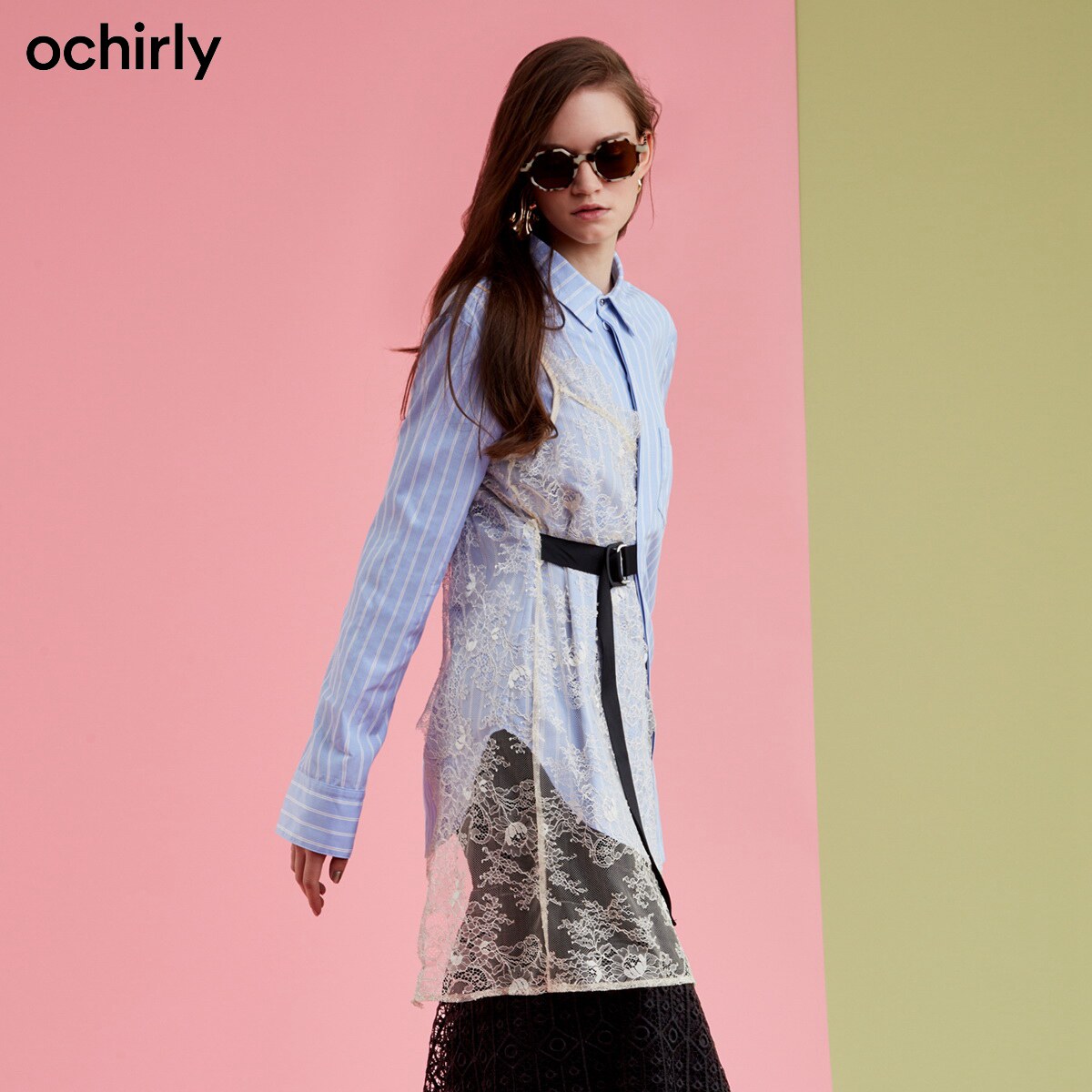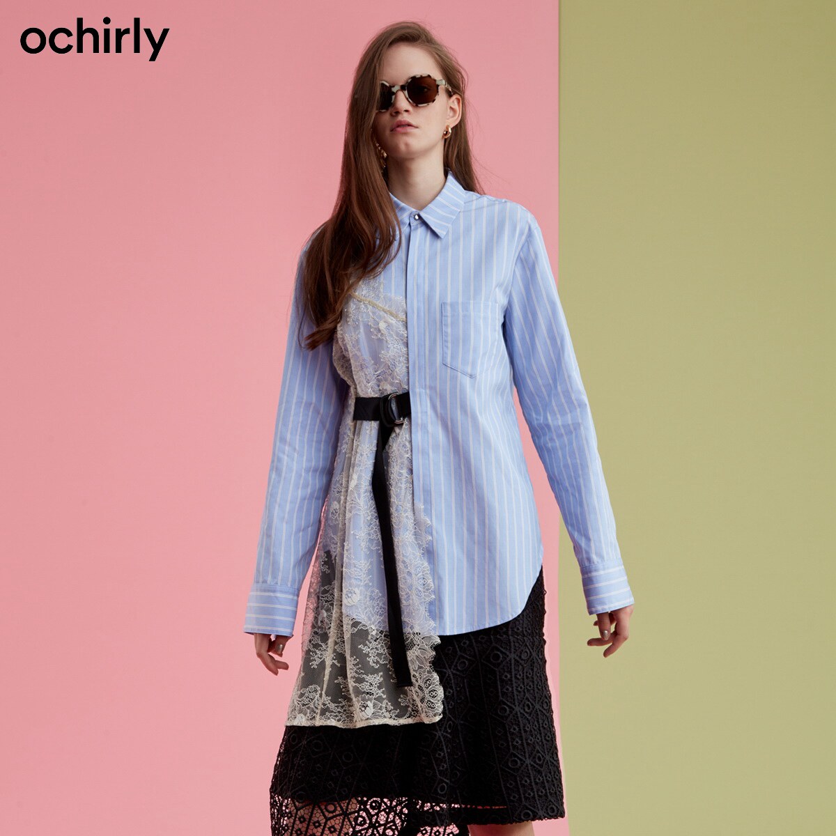 Ochirly Ochily осенняя упаковка с длинным длинным костюмом полосатая рубашка женская 1COM13360