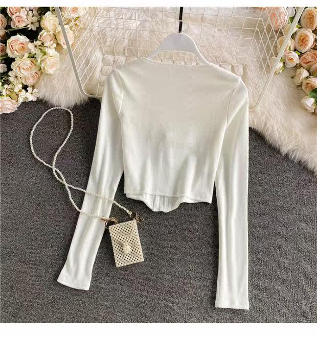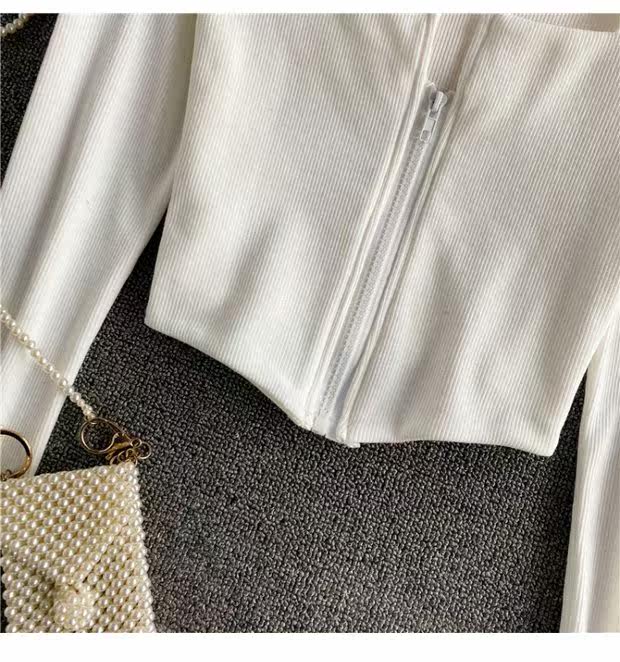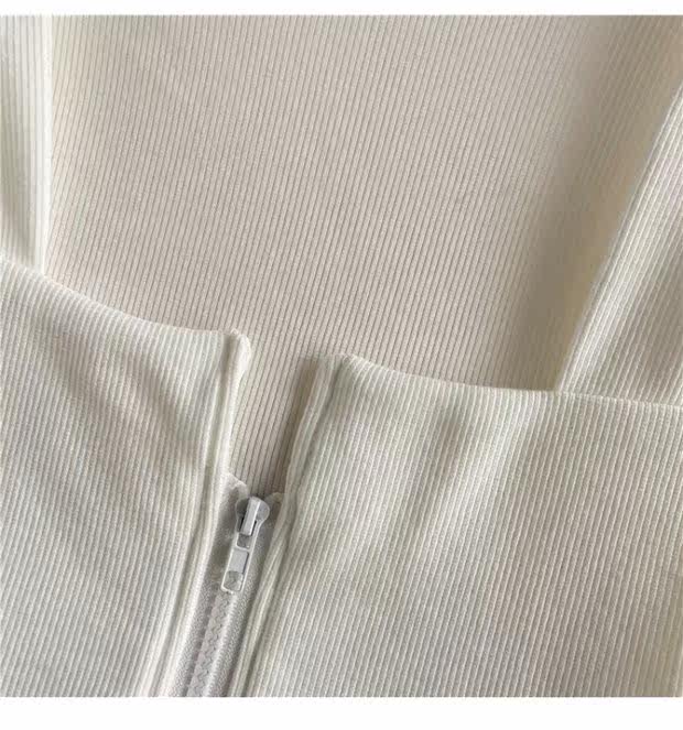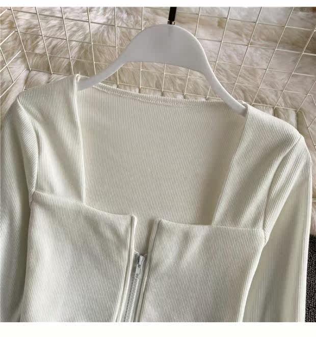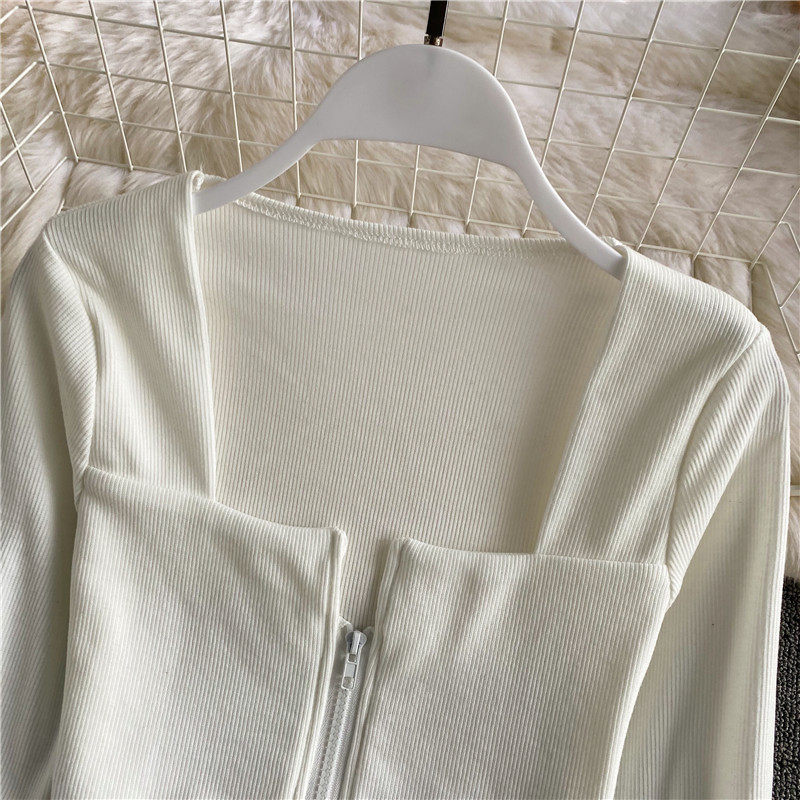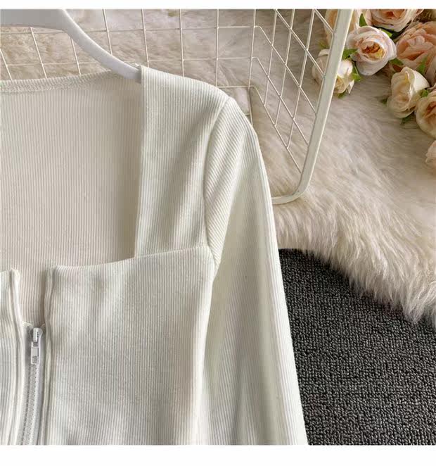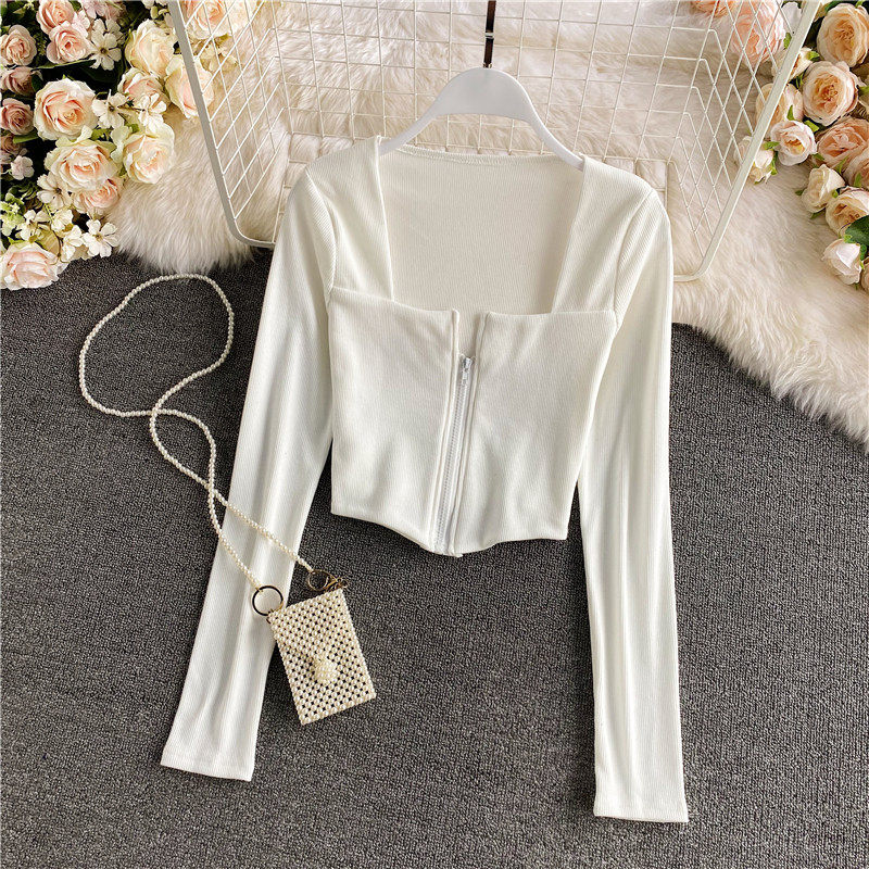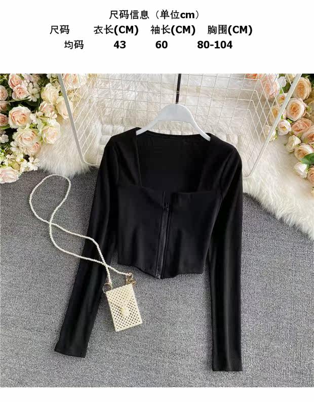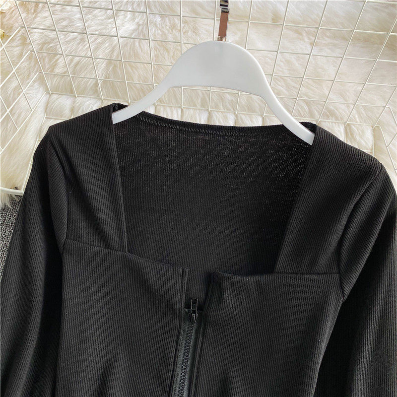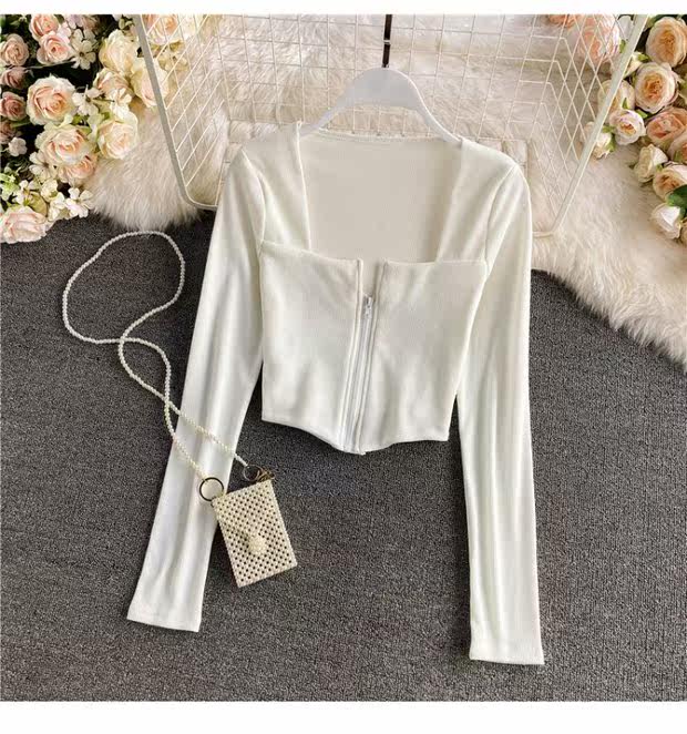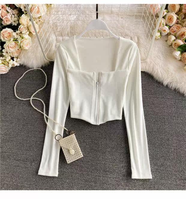 Короткий приталенный базовый приятный телу лонгслив с молнией, квадратный вырез, высокая талия, в обтяжку, по фигуре