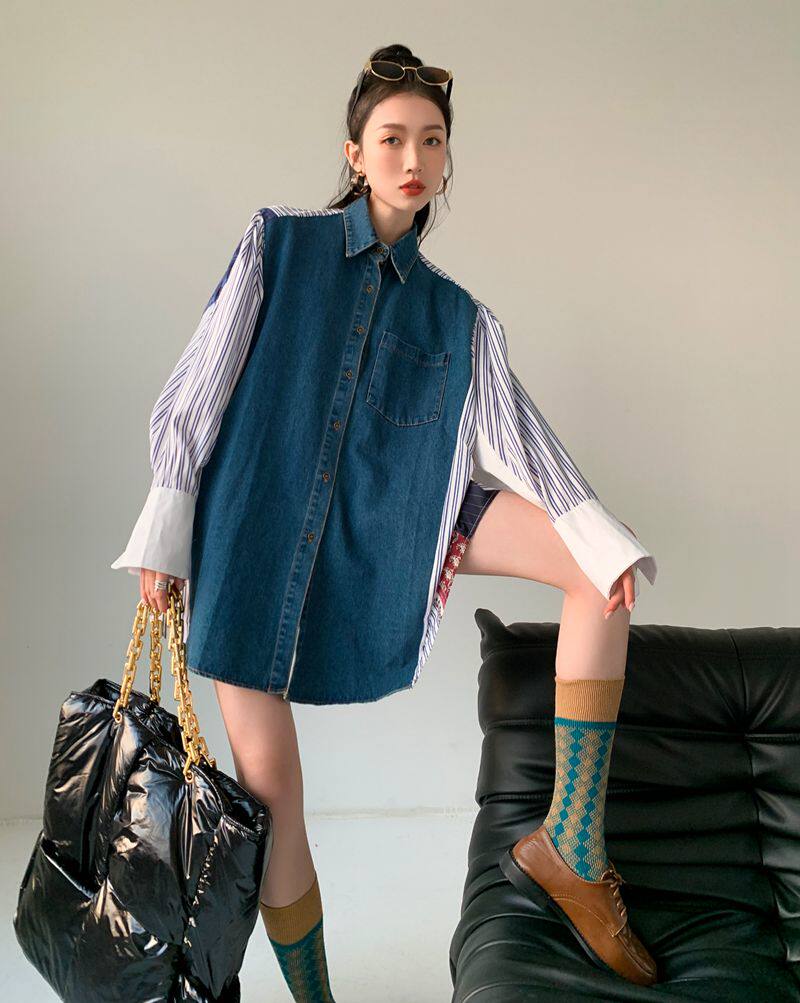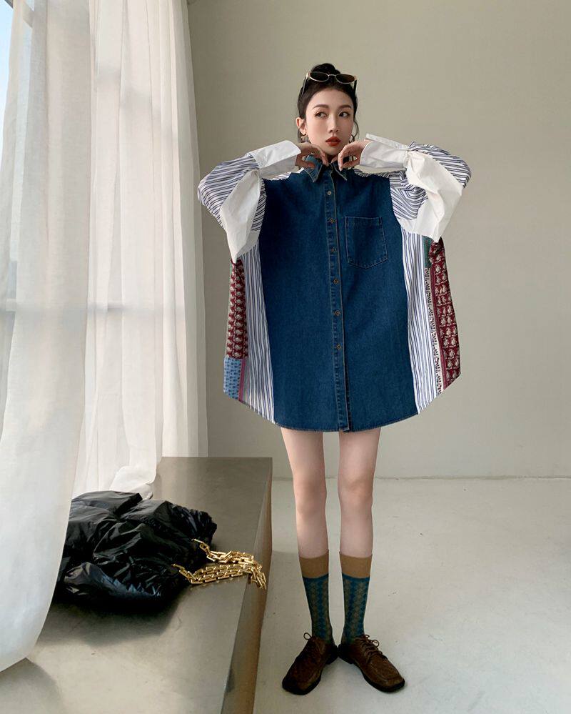 Осенняя модная рубашка, дизайнерская юбка, платье, городской стиль, французский стиль, тренд сезона