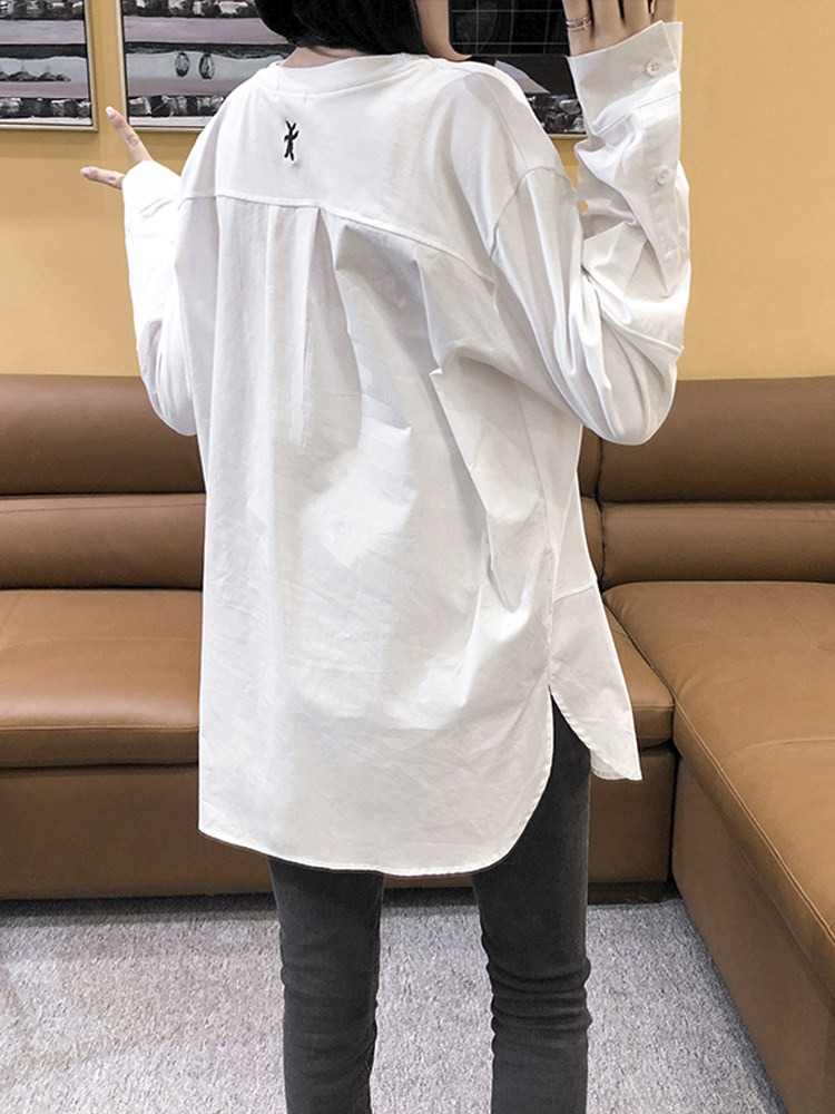 Рубашка, дизайнерская длинная белая базовая футболка, тренд сезона, средней длины