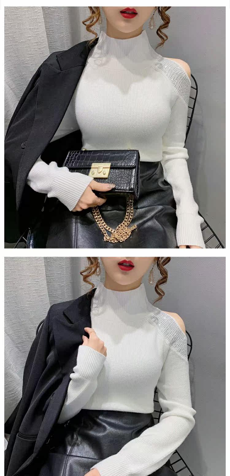 Трикотажный свитер, демисезонный белый лонгслив, в западном стиле, коллекция 2022