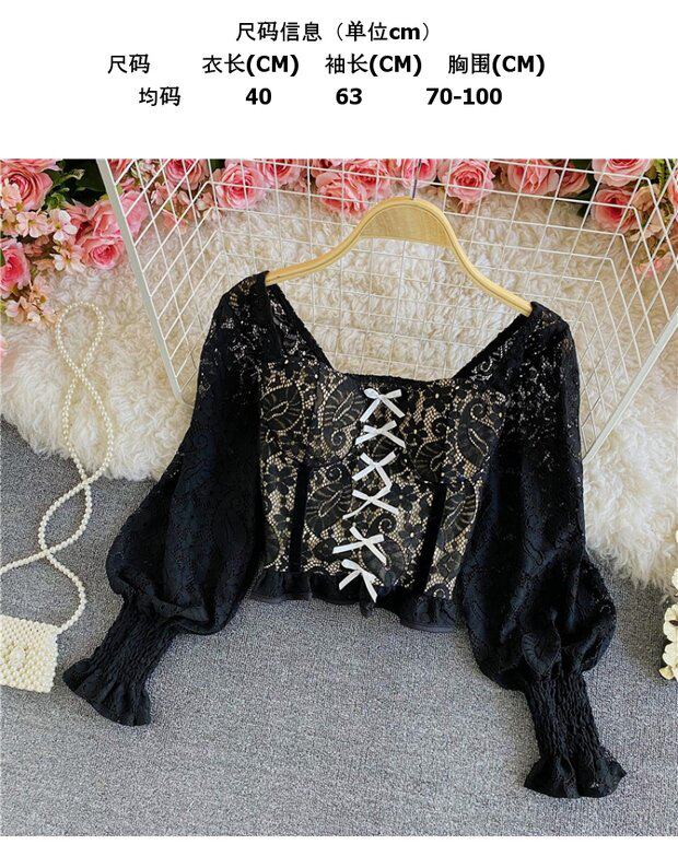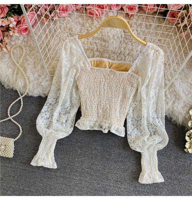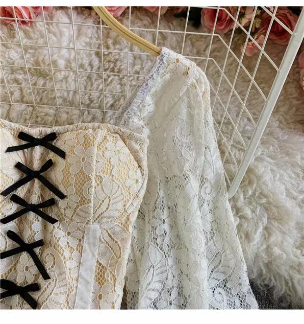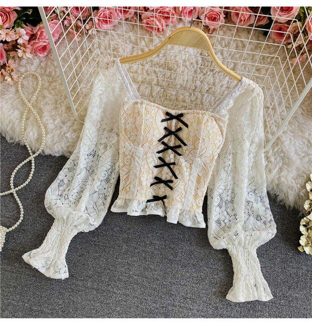 Приталенный корсет, короткая рубашка, футболка, французский стиль, квадратный вырез, в западном стиле, рукава фонарики