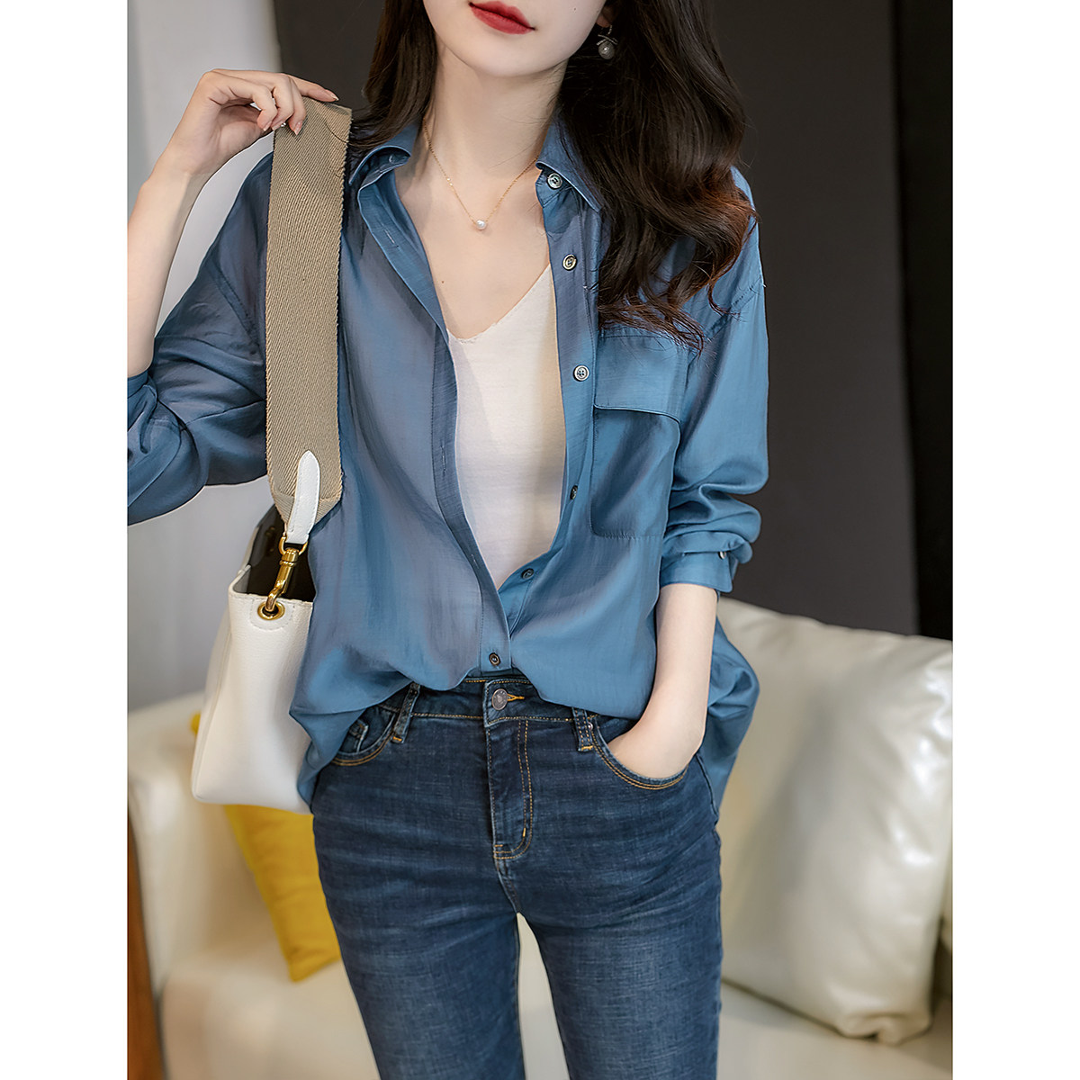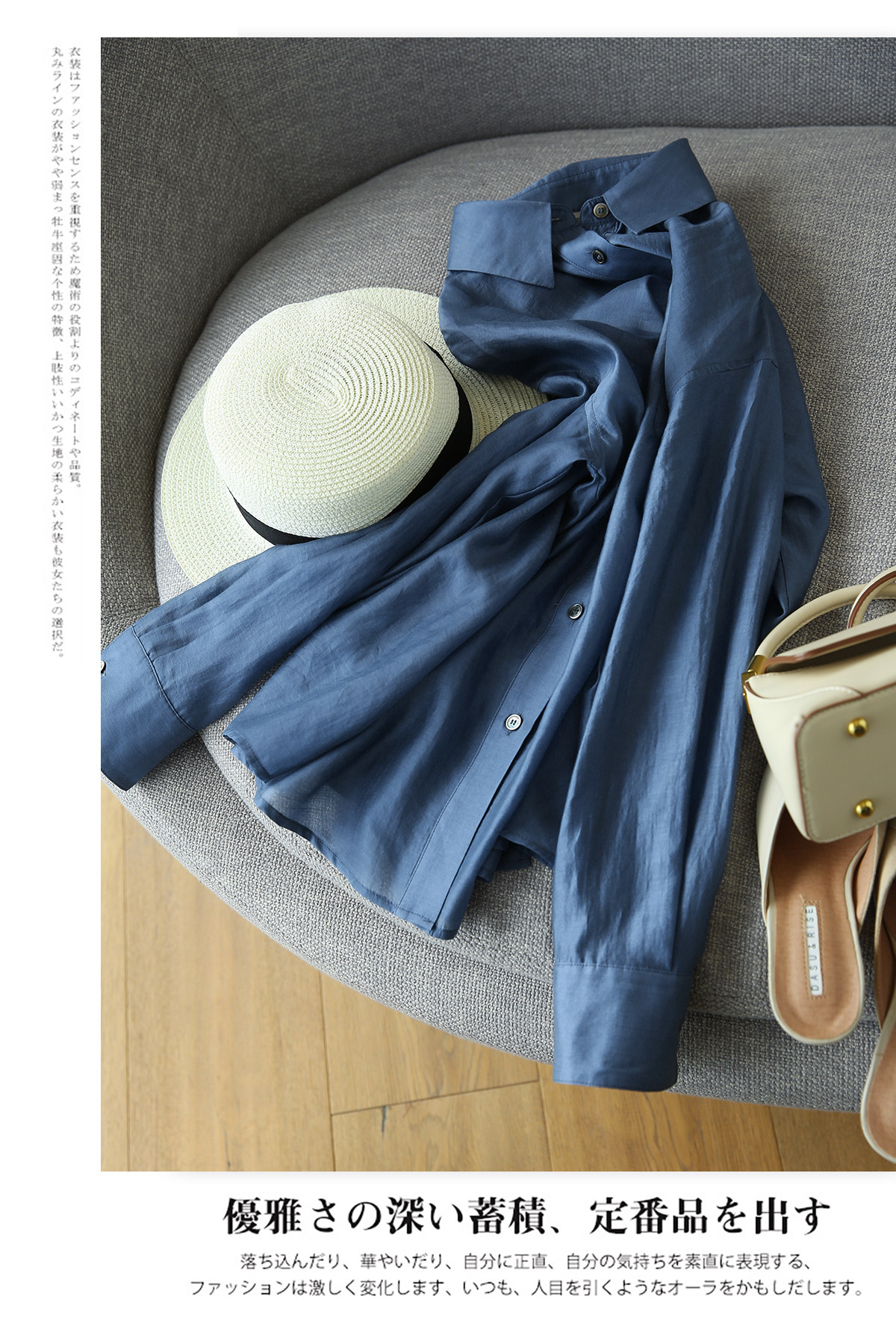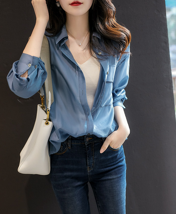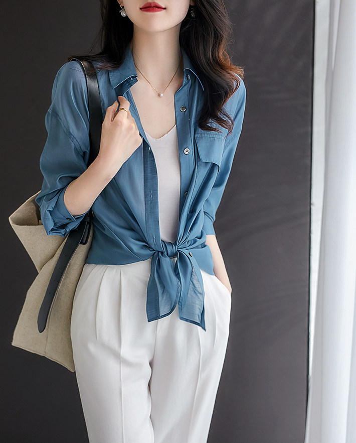 [CY317469AG] Павильон Xiaohan в атмосфере 靛 синий высококачественный цвет!ОС Плоская рубашка лизера