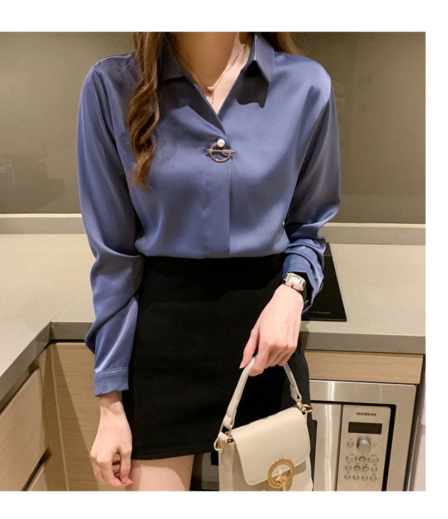 Весенняя базовая приятная телу летняя рубашка, 2022 года, городской стиль, V-образный вырез, в западном стиле