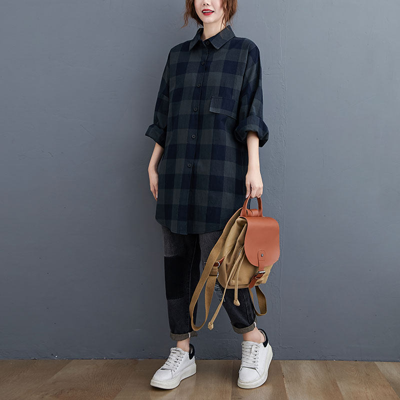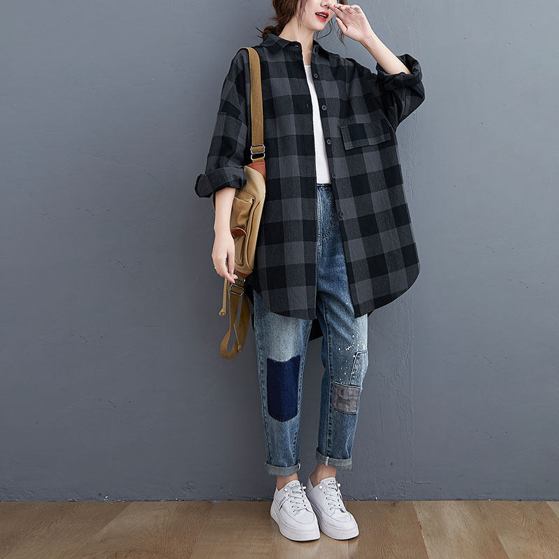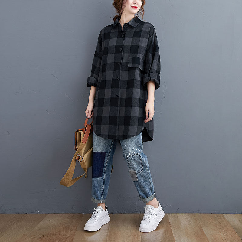 Ретро рубашка, весенняя длинная куртка, свободный крой, средней длины
