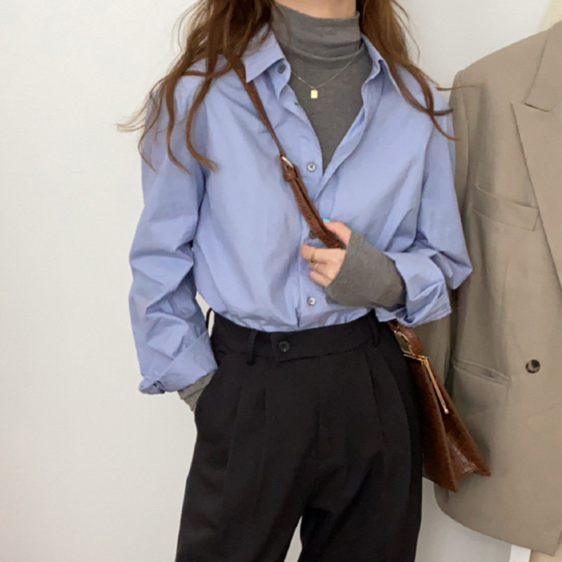 Рубашка, ретро базовый лонгслив, в корейском стиле, 2023