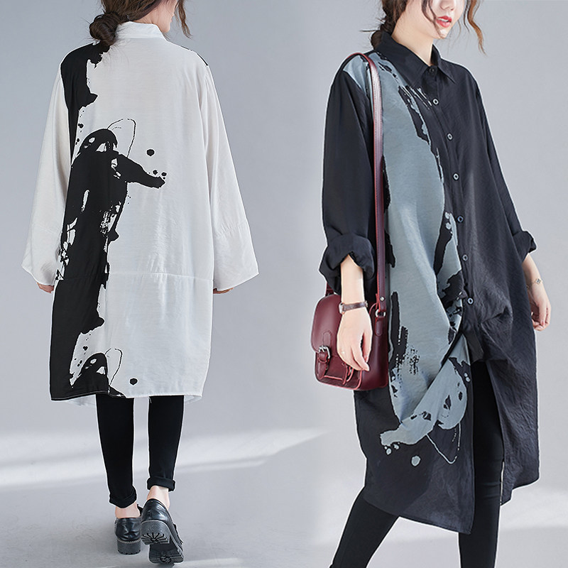 Дизайнерская длинная весенняя рубашка, ретро платье, тренд сезона, средней длины, коллекция 2021, оверсайз, в цветочек