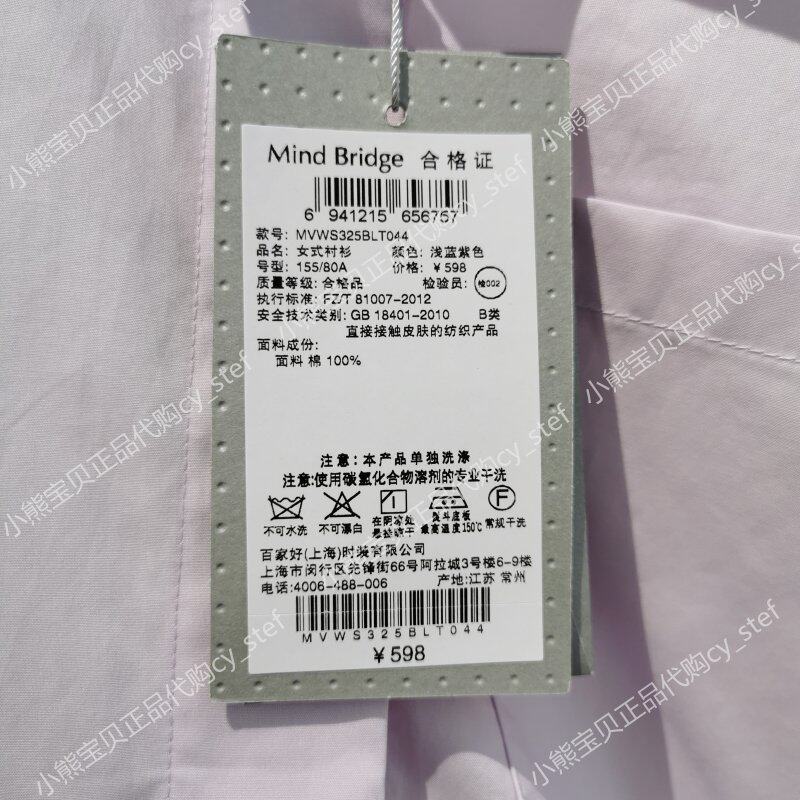 Spot Mind Bridge counter подлинная весенняя женская рубашка из чистого хлопка с длинными рукавами 2021 MVWS325B-598