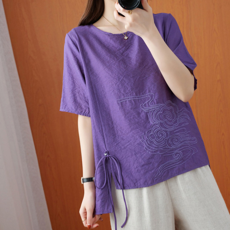 Ретро рубашка, летняя футболка, китайский стиль, с вышивкой, короткий рукав, коллекция 2021, оверсайз