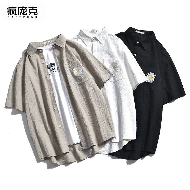 Японская летняя рубашка, брендовая парная одежда, короткий рукав, оверсайз, для влюбленных