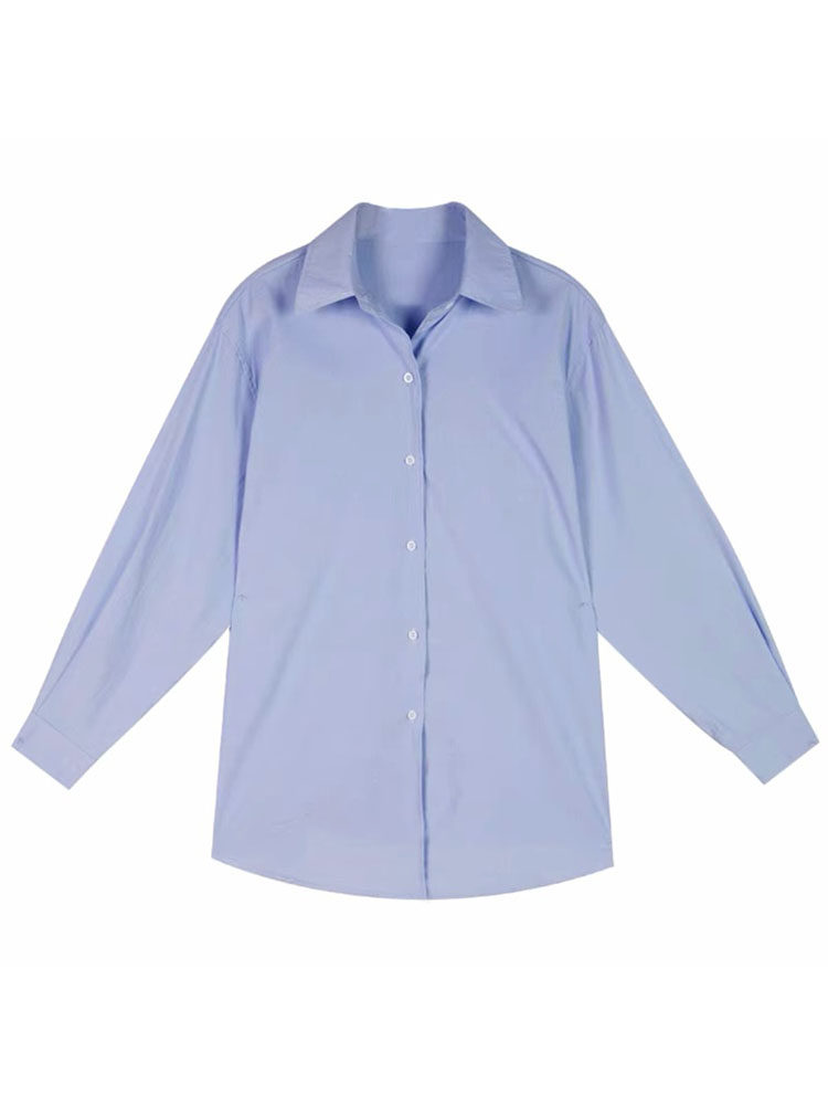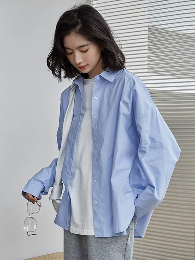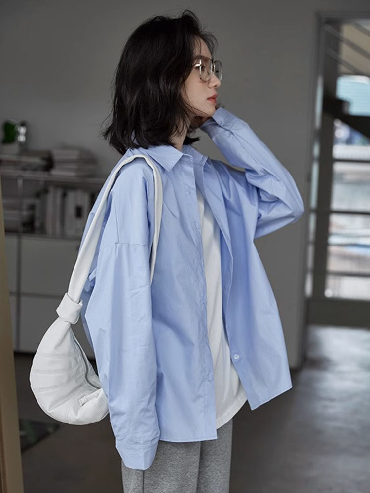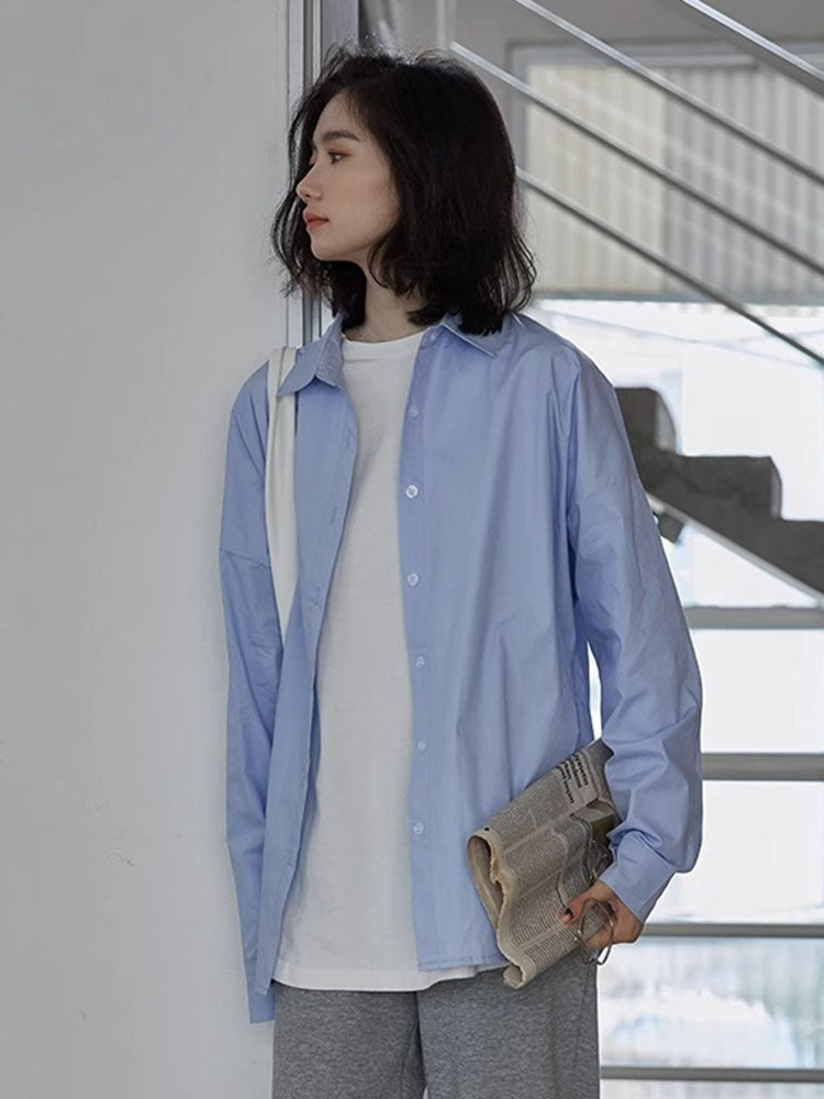 Дизайнерская синяя осенняя рубашка, тренд сезона, 2023 года, в корейском стиле