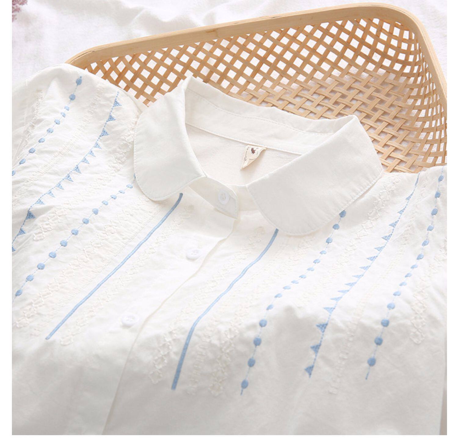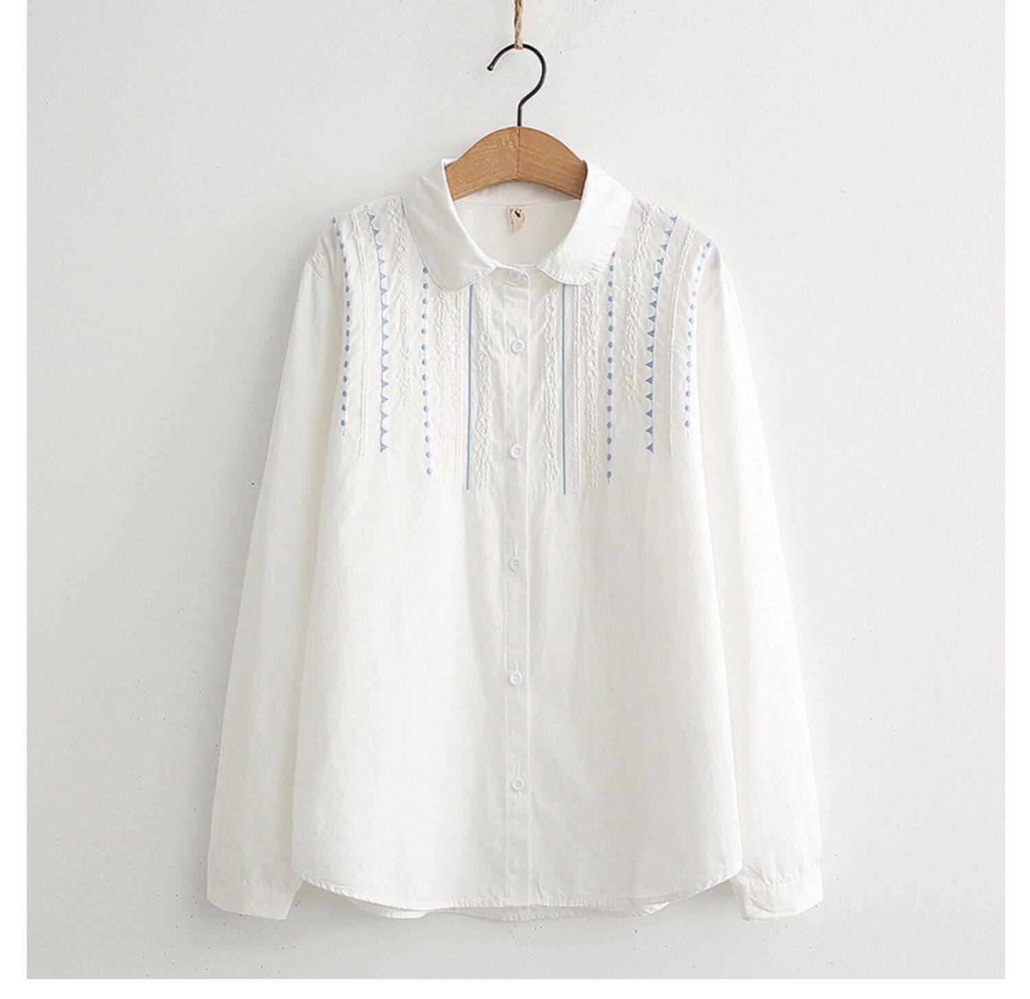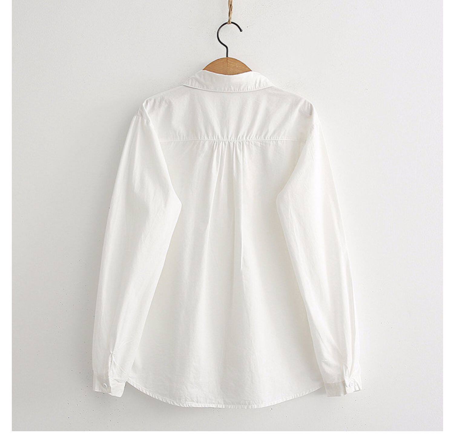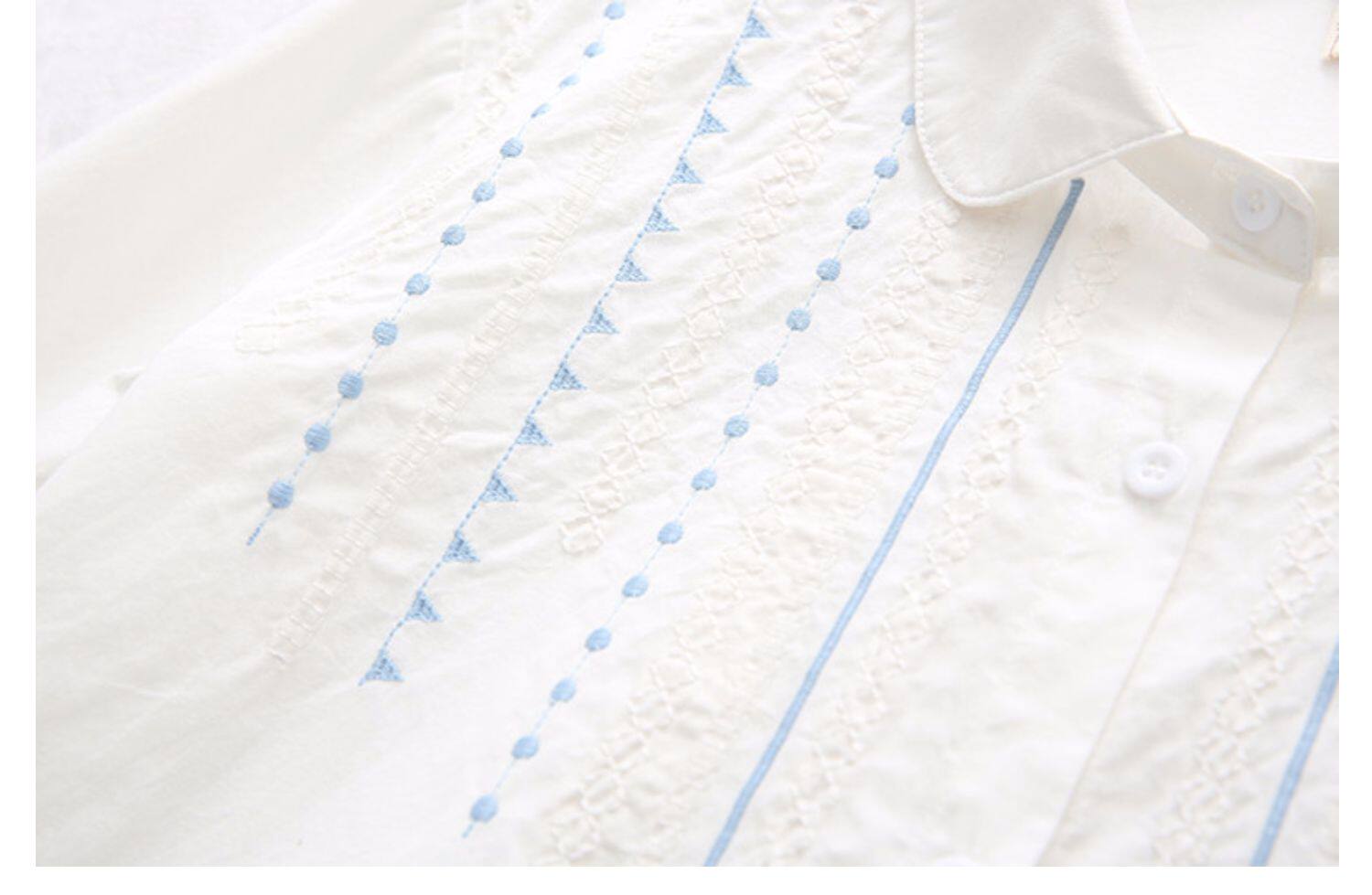 Весенняя свежая хлопковая рубашка, белый лонгслив, с вышивкой