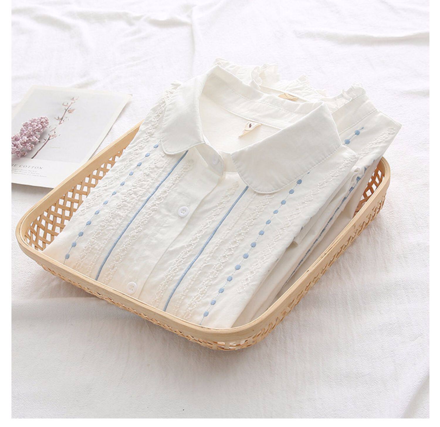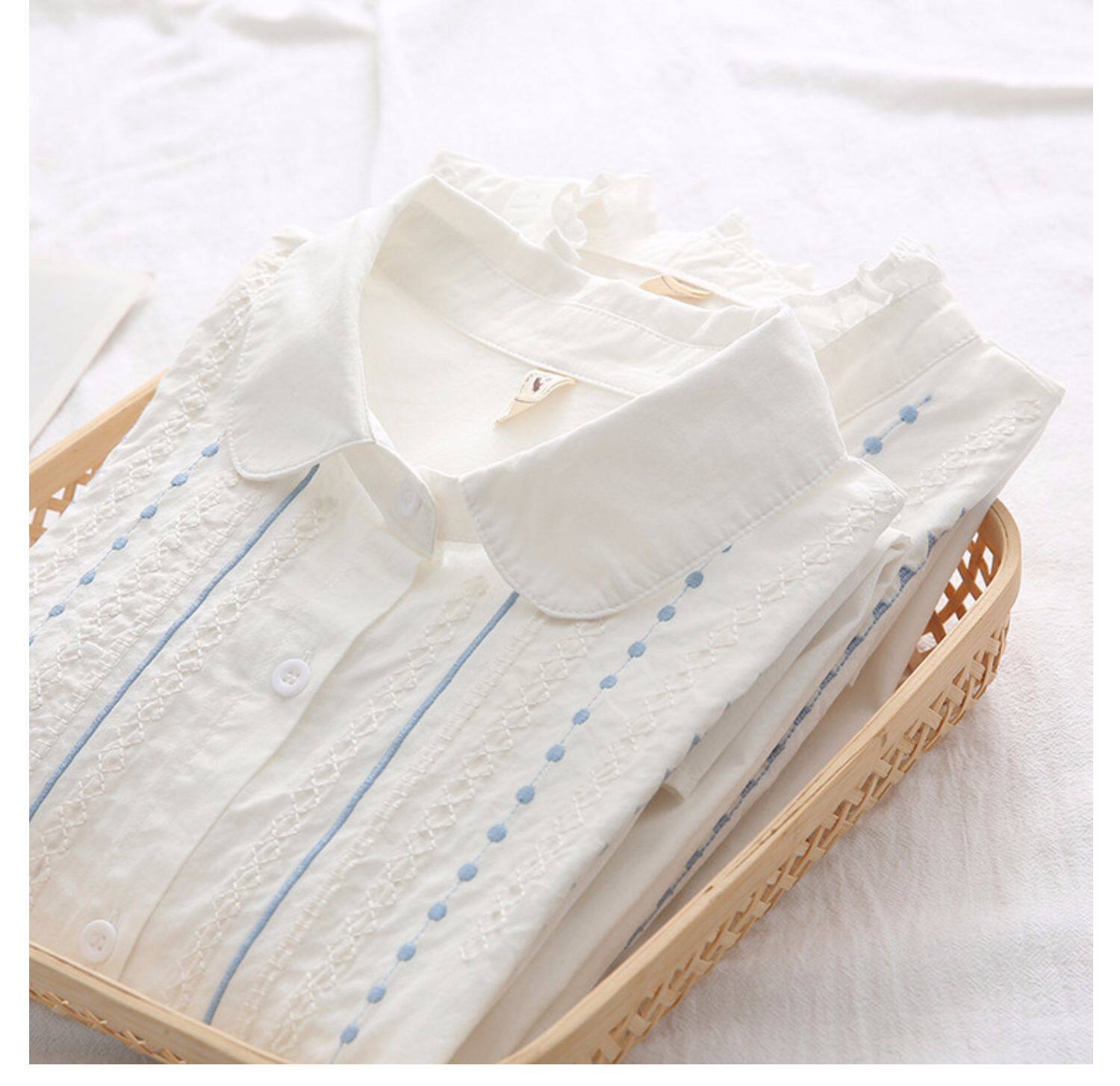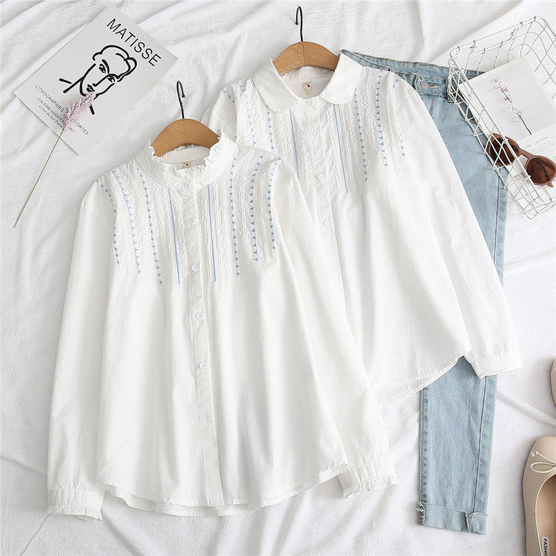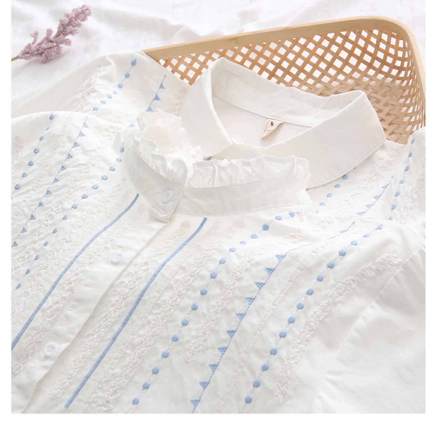 Весенняя свежая хлопковая рубашка, белый лонгслив, с вышивкой