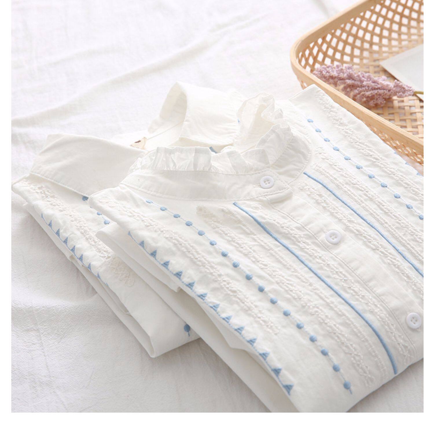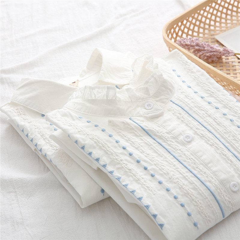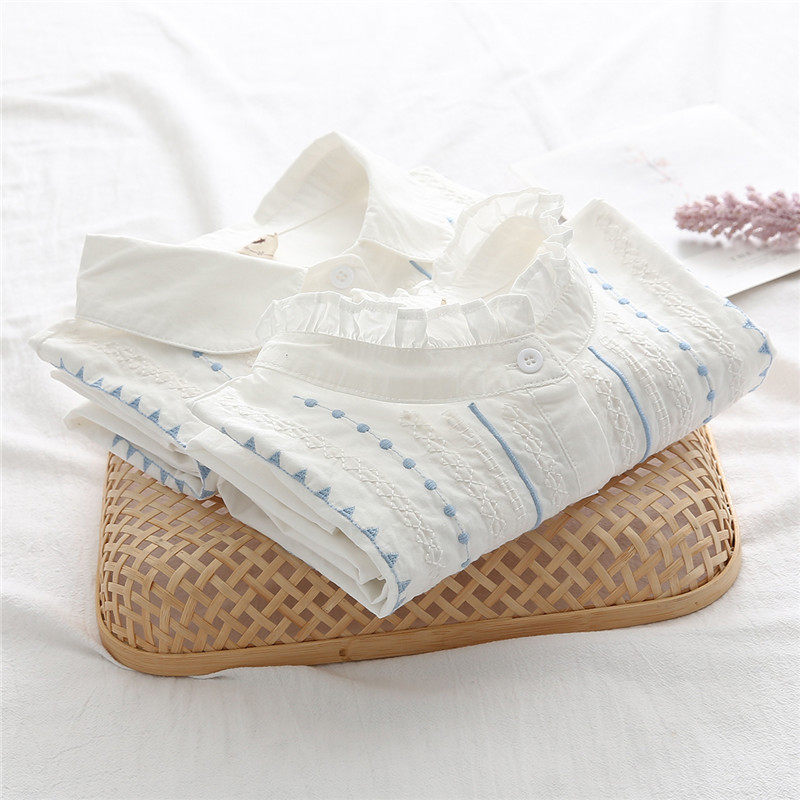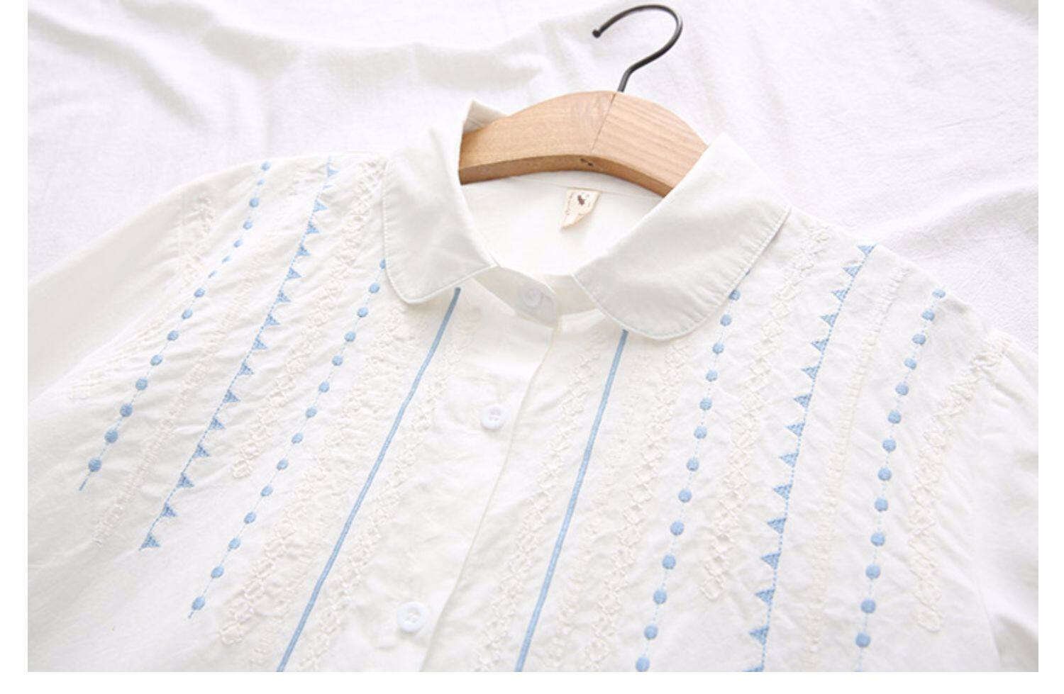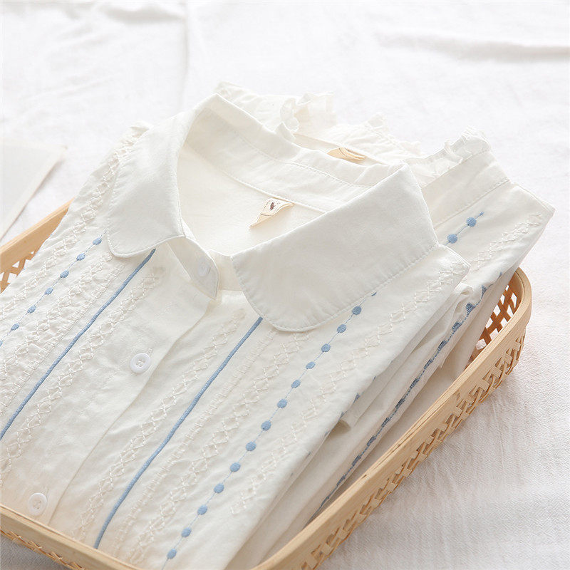 Весенняя свежая хлопковая рубашка, белый лонгслив, с вышивкой