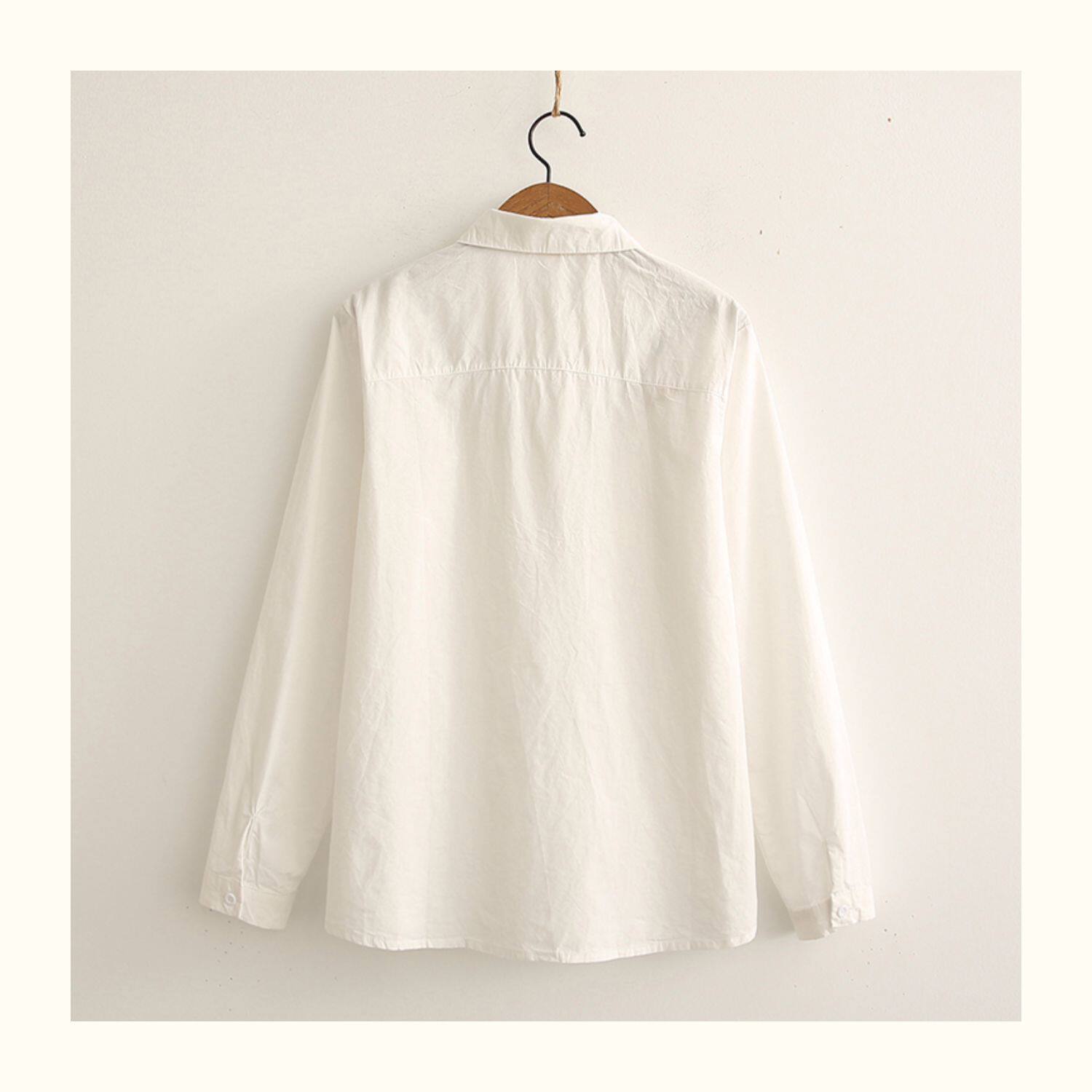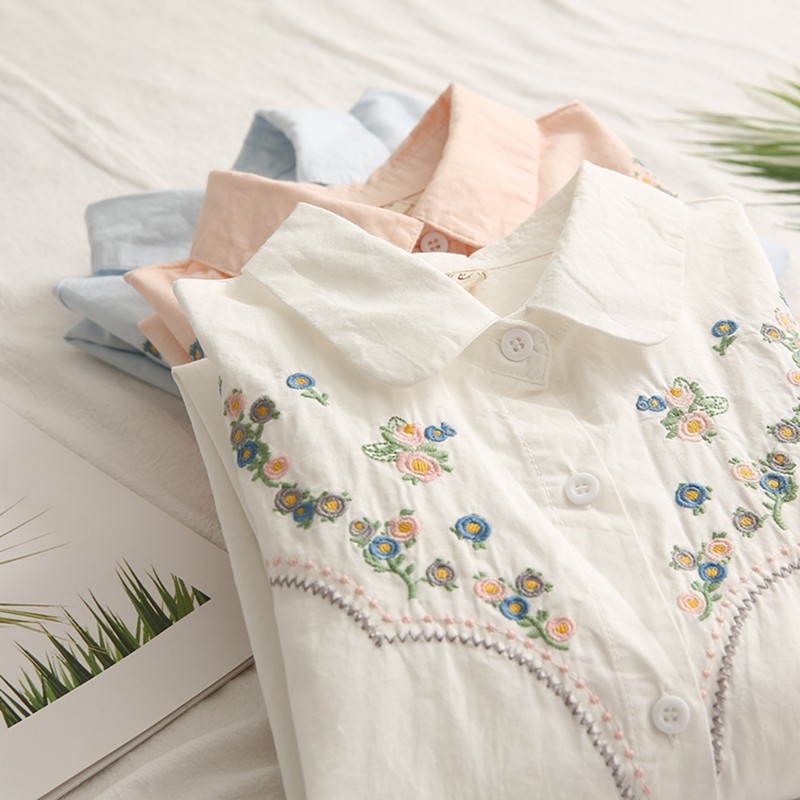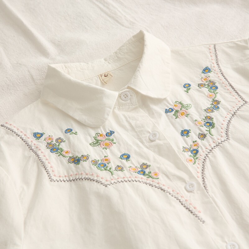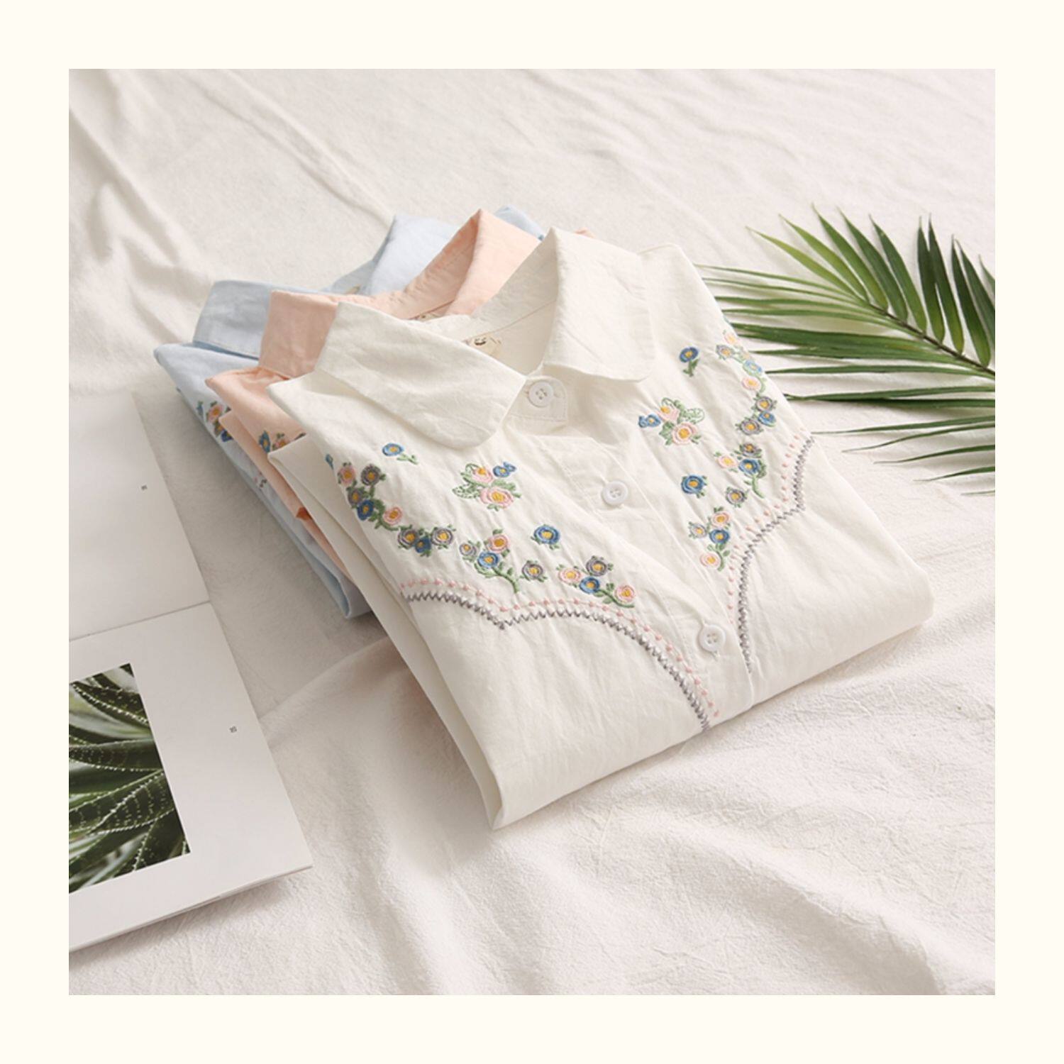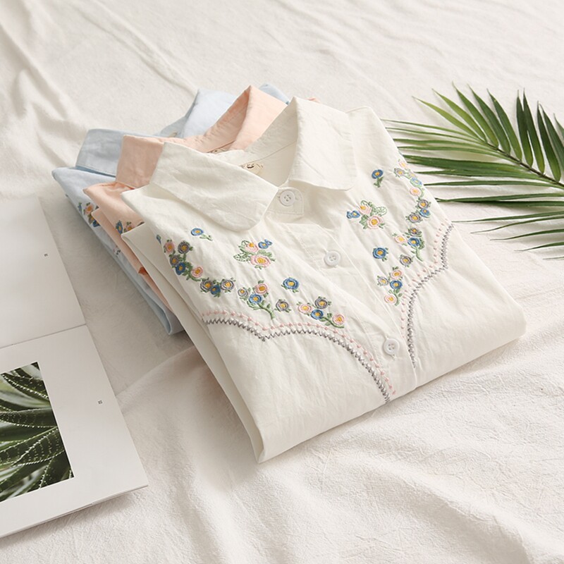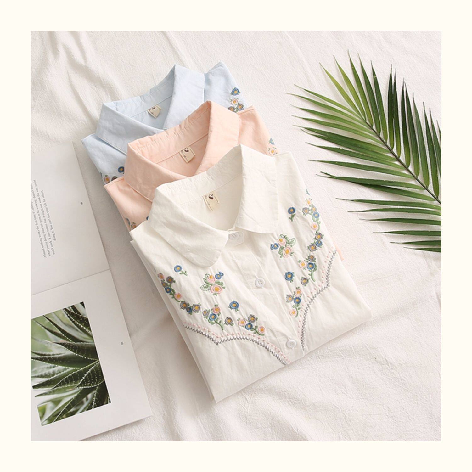 Весенняя свежая хлопковая рубашка, лонгслив, коллекция 2021, цветочный принт, с вышивкой, свободный крой