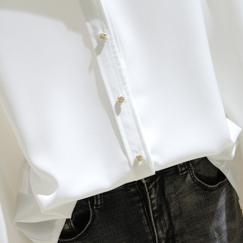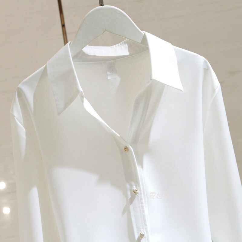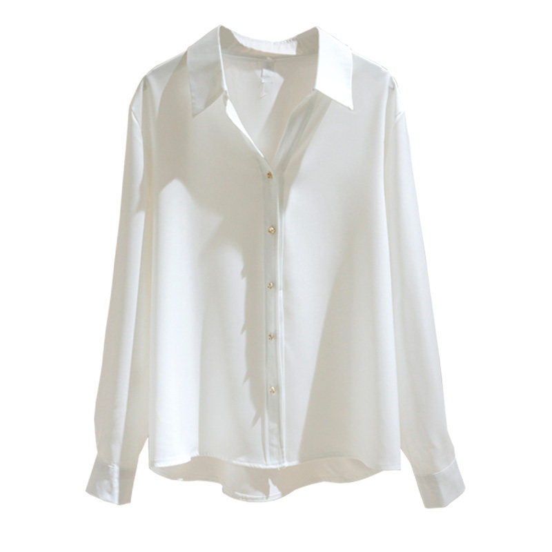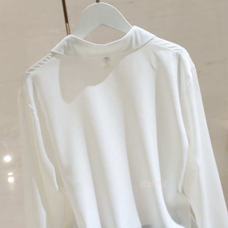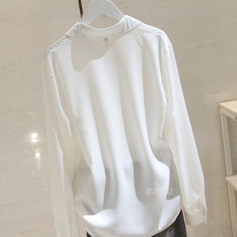Белая рубашка, осенний дизайнерский шифоновый лонгслив, Гонконг, свободный крой, тренд сезона, V-образный вырез