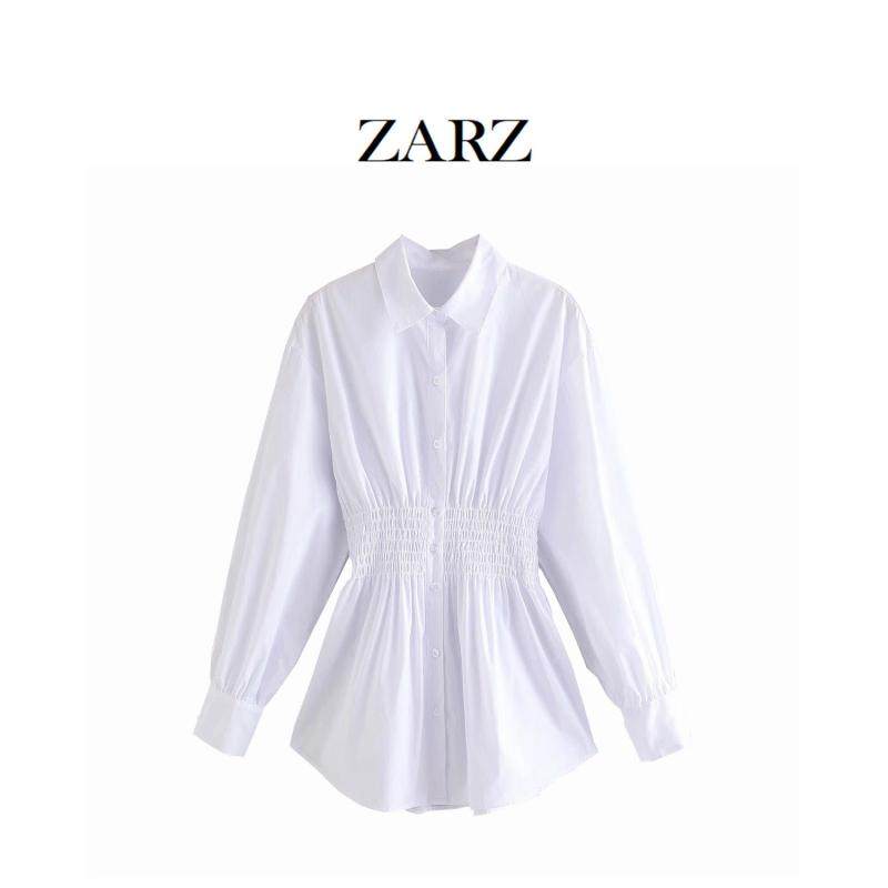 ZARZ Self -Made European и American Style New Women Simple Demperament слегка слегка тронутая выдвижная рубашка талии 0948428