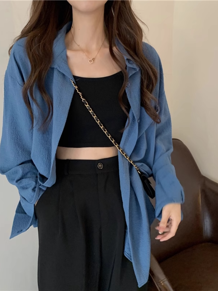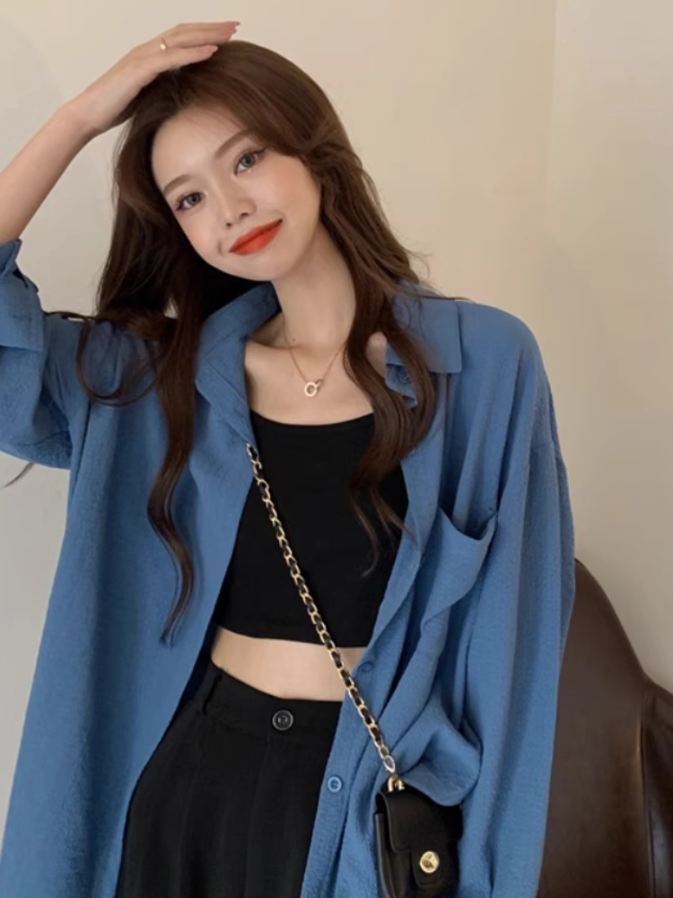 K-стиль 2025, новая тонкая синяя рубашка, летние топы, женские дизайнерские нишевые многофункциональные куртки с длинными рукавами, новые модные