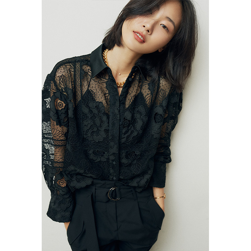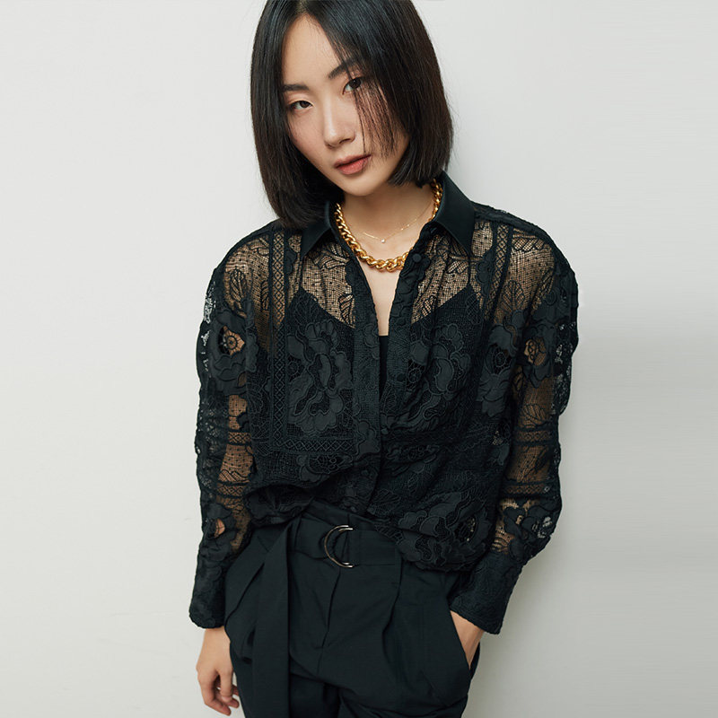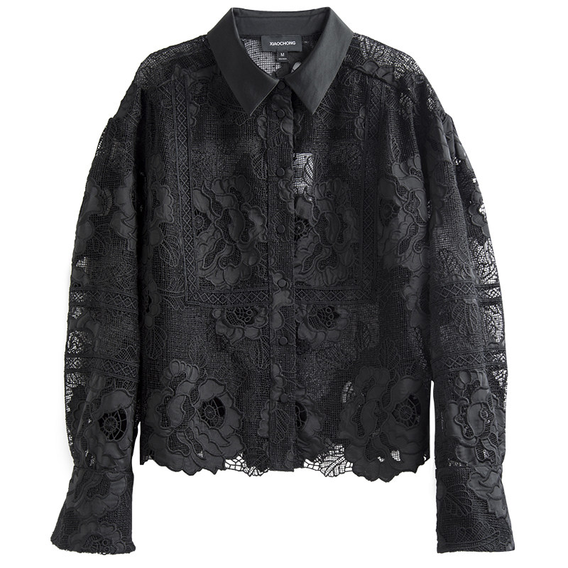 Кружевной мегафон ручной работы, рубашка, кружевное платье, в цветочек, свободный крой