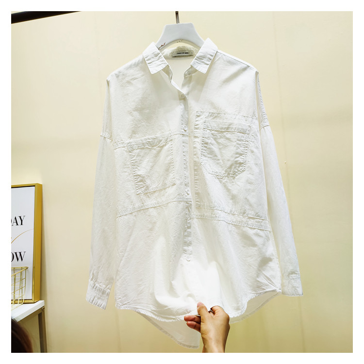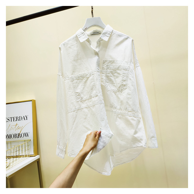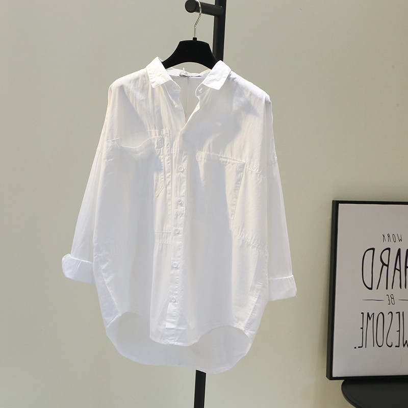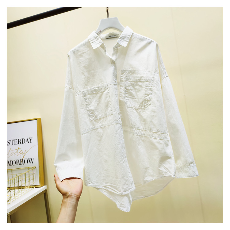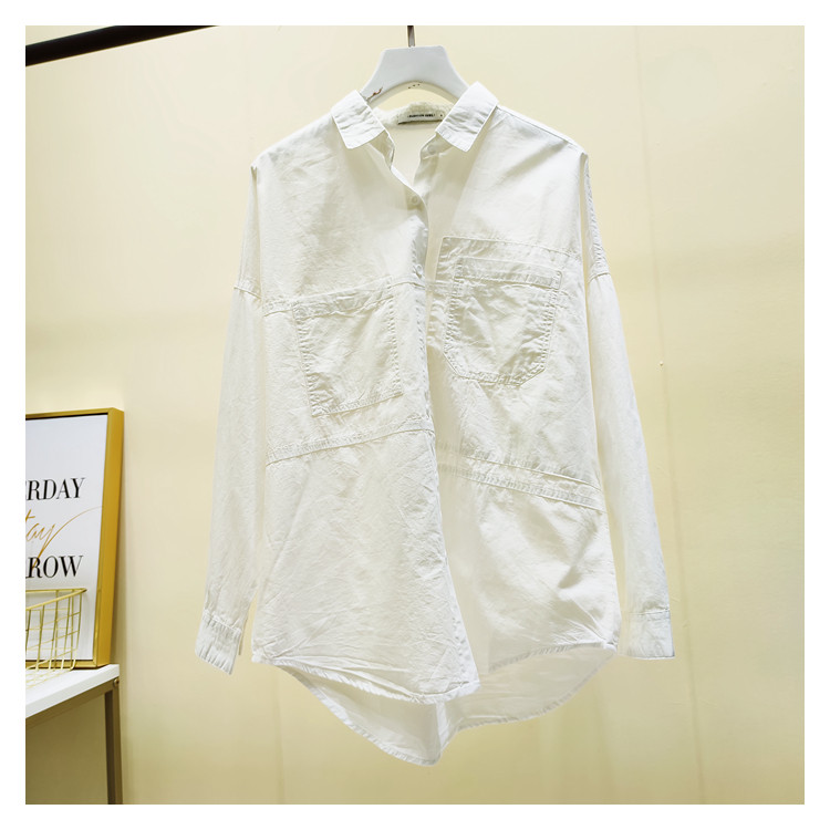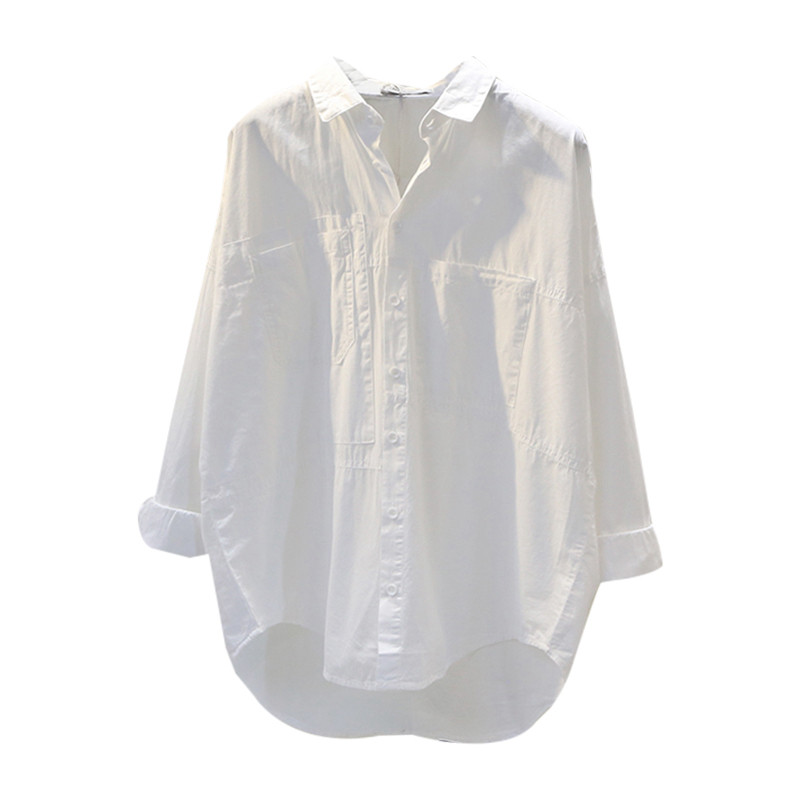 Белая рубашка для отдыха, ассиметричный крой, в корейском стиле