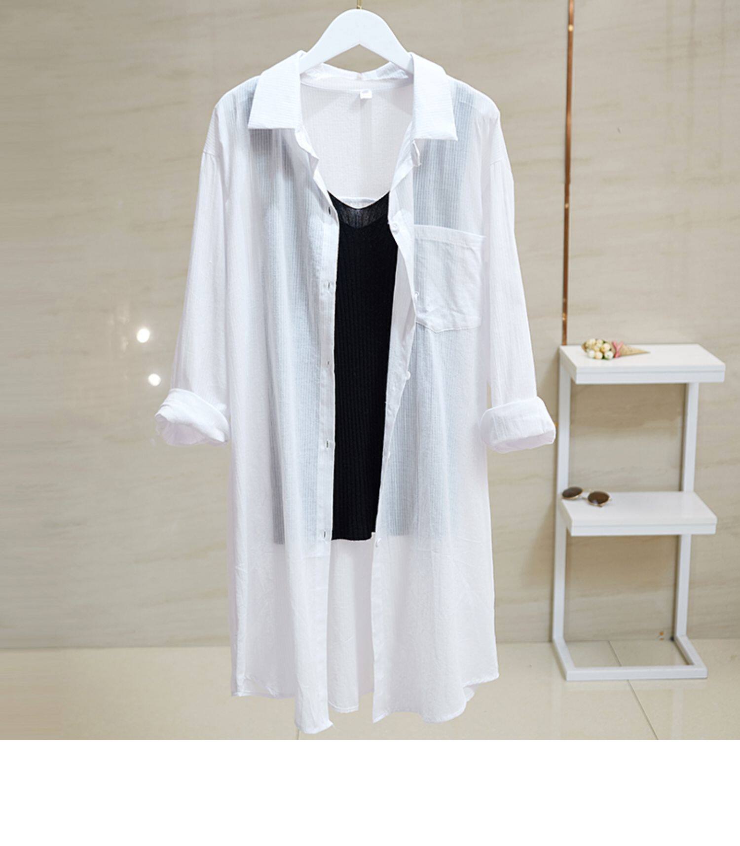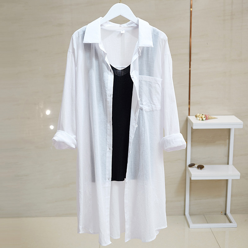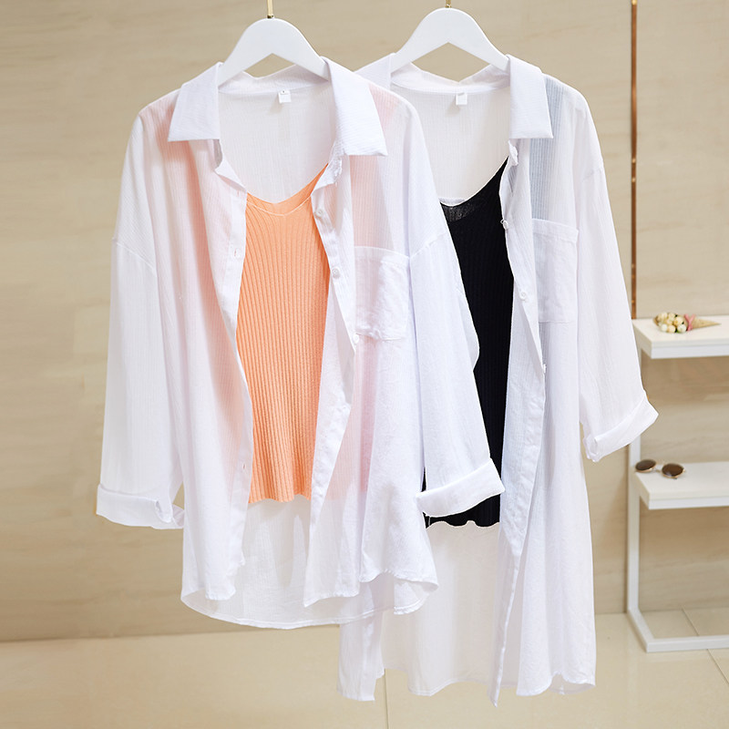 Летняя летняя одежда, одежда для защиты от солнца, длинный дышащий кардиган, пляжный лонгслив, куртка, средней длины, из хлопка и льна, свободный крой