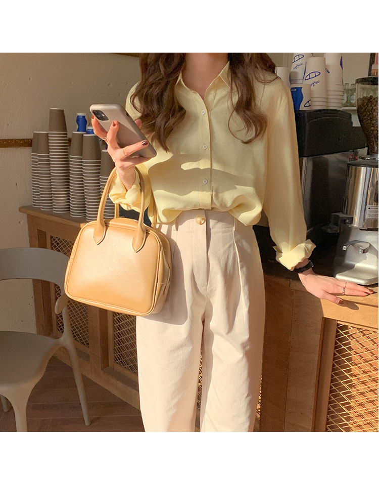 Брендовая кремовая желтая рубашка, свободный крой