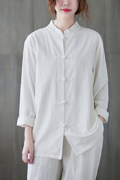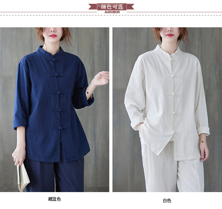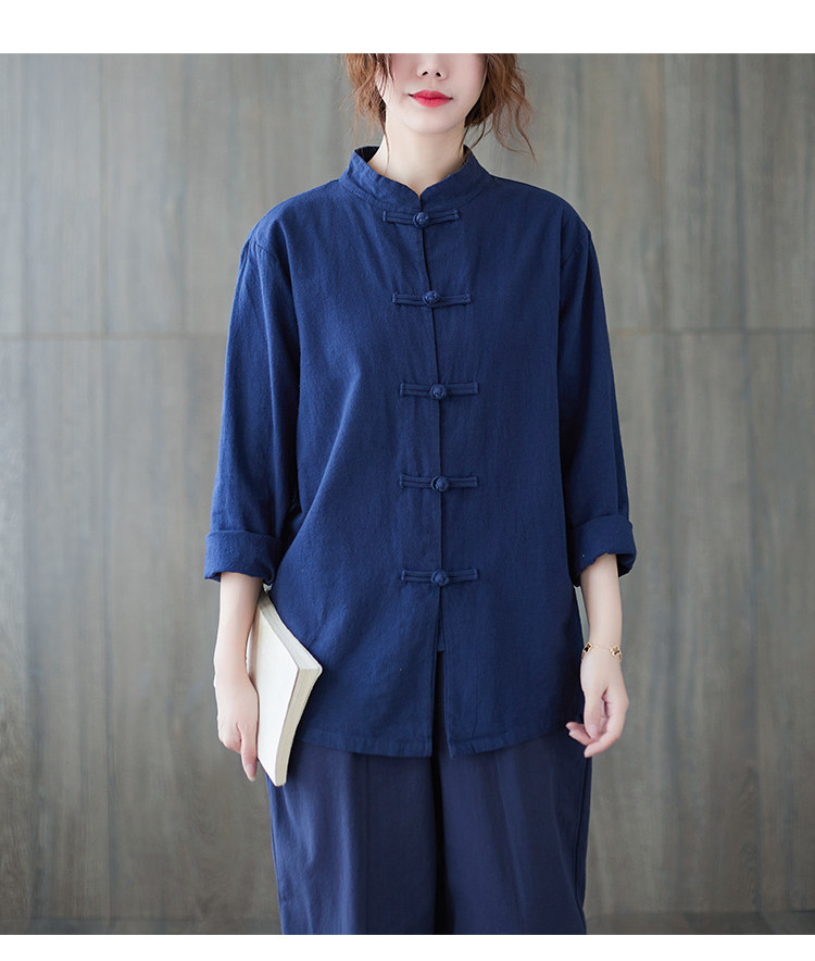 Демисезонная рубашка, китайский стиль, из хлопка и льна, размер, свободный крой