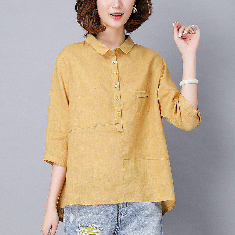 Летняя тонкая рубашка, из хлопка и льна, оверсайз