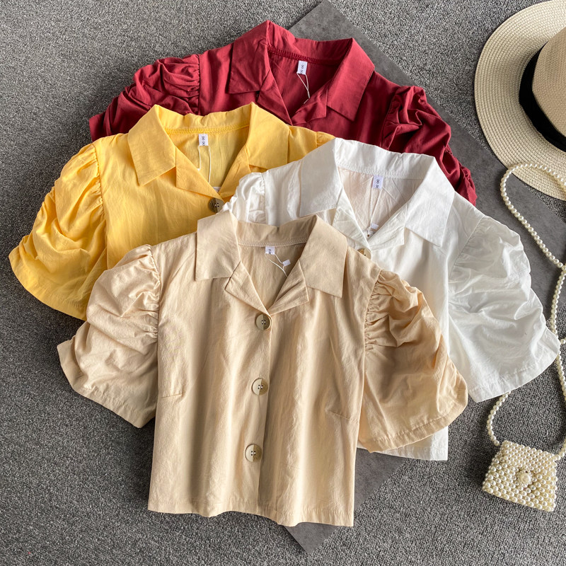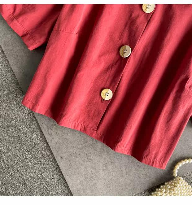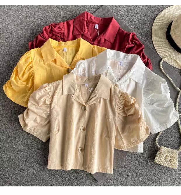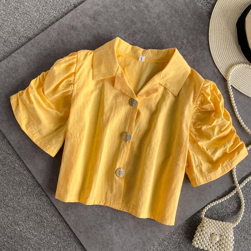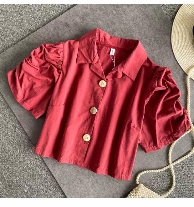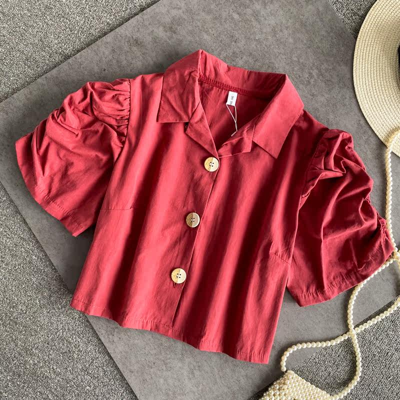 Ретро приталенная короткая рубашка, французский стиль, рукава фонарики, квадратный вырез, в западном стиле