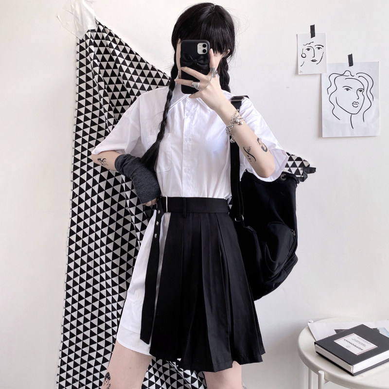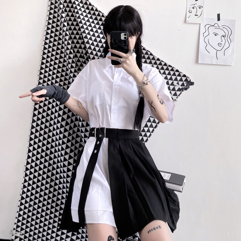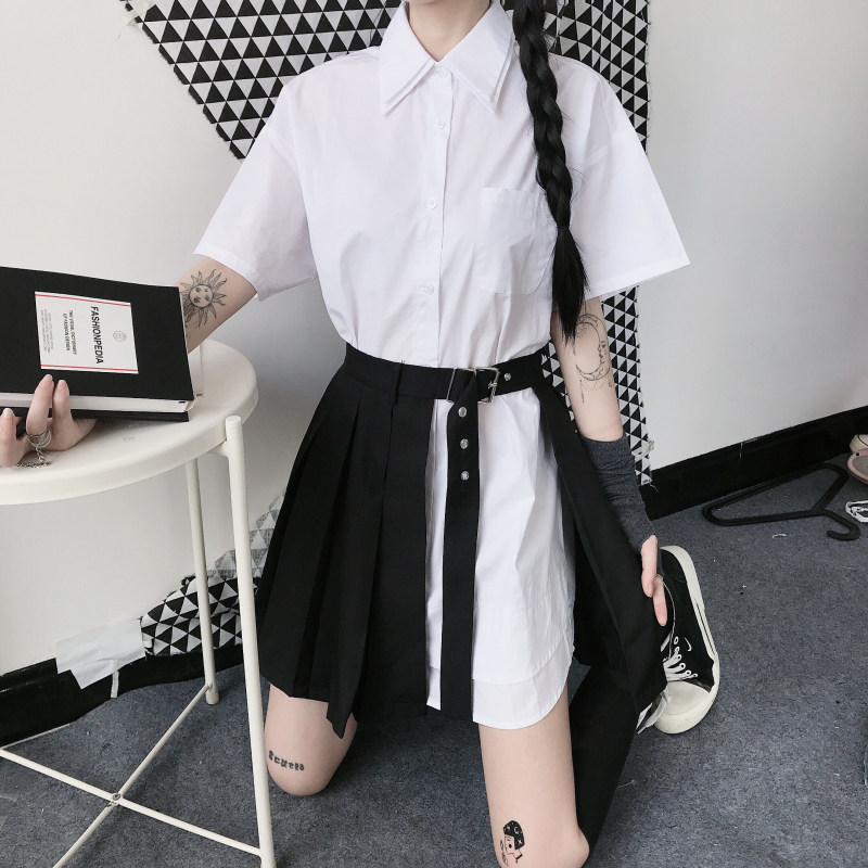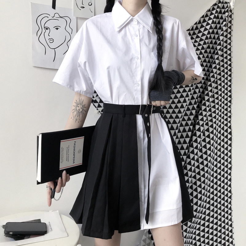 Летняя брендовая ретро небольшая дизайнерская рубашка, юбка в складку, в корейском стиле, высокая талия