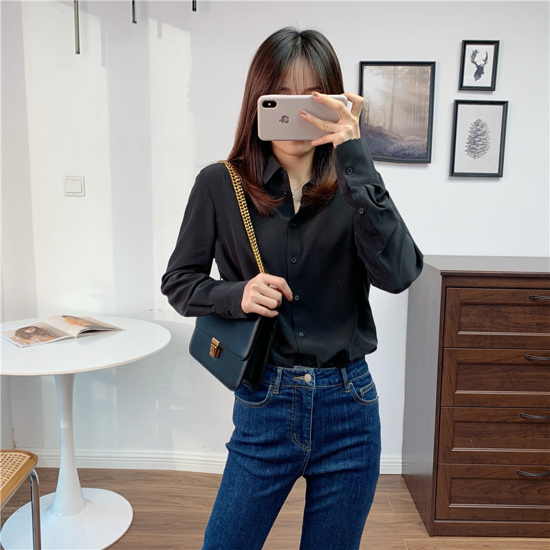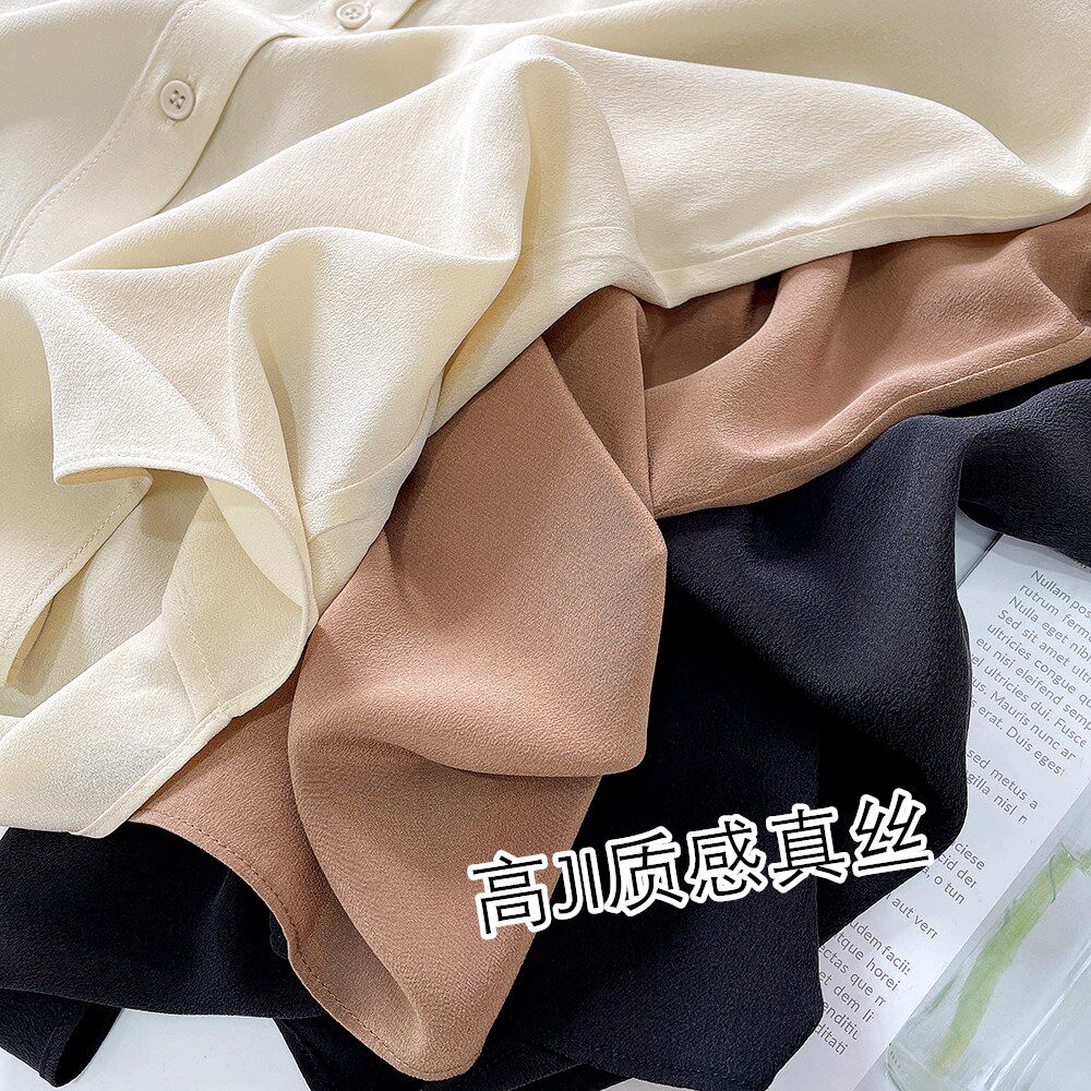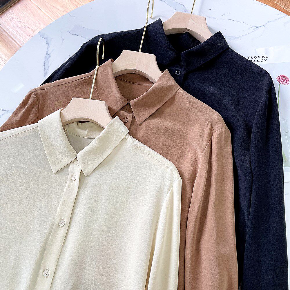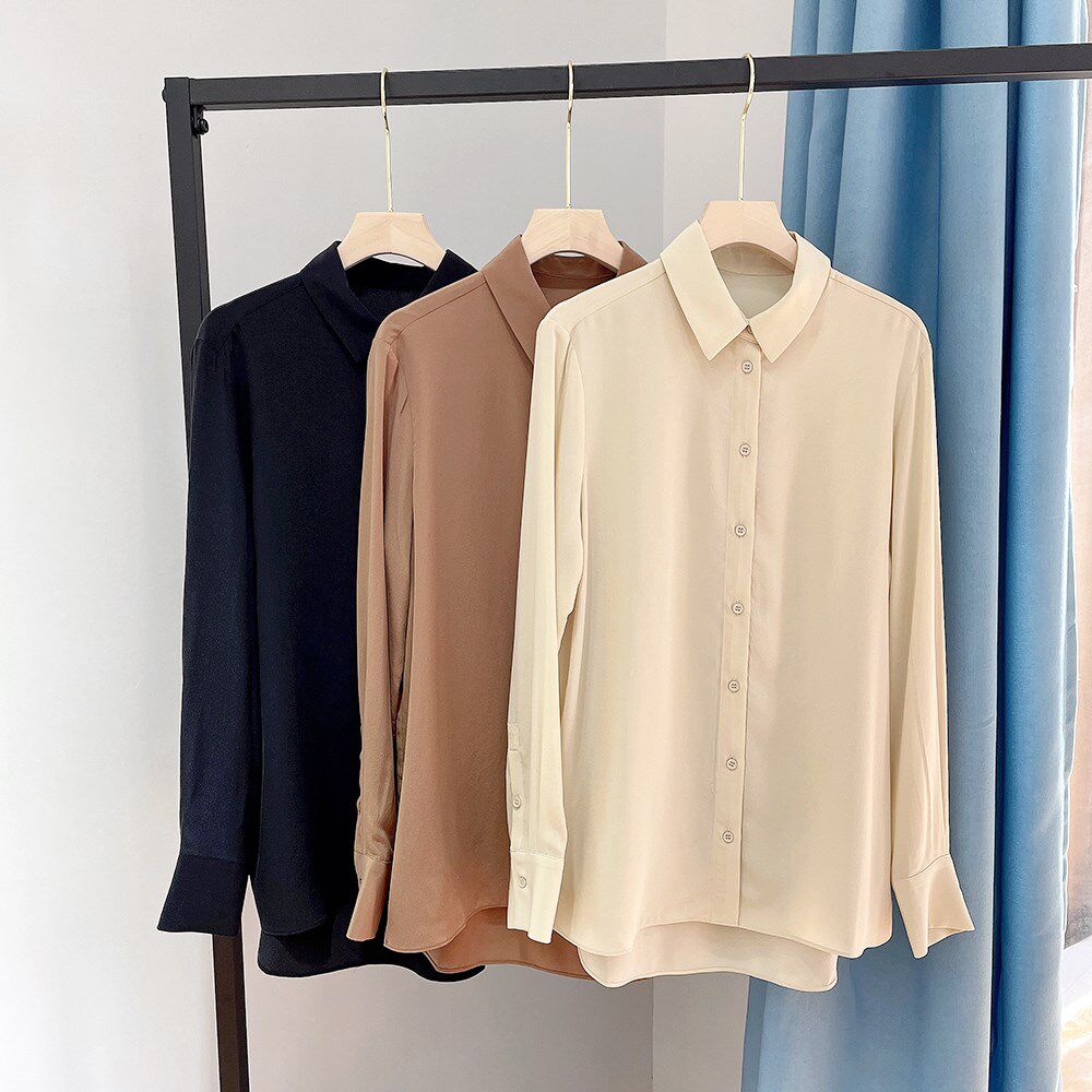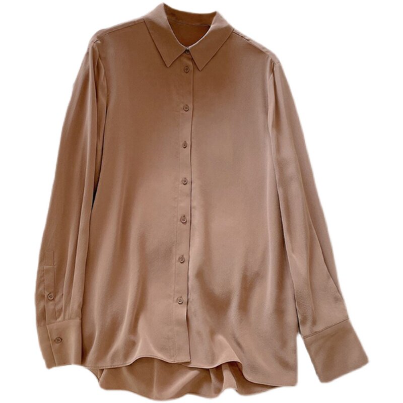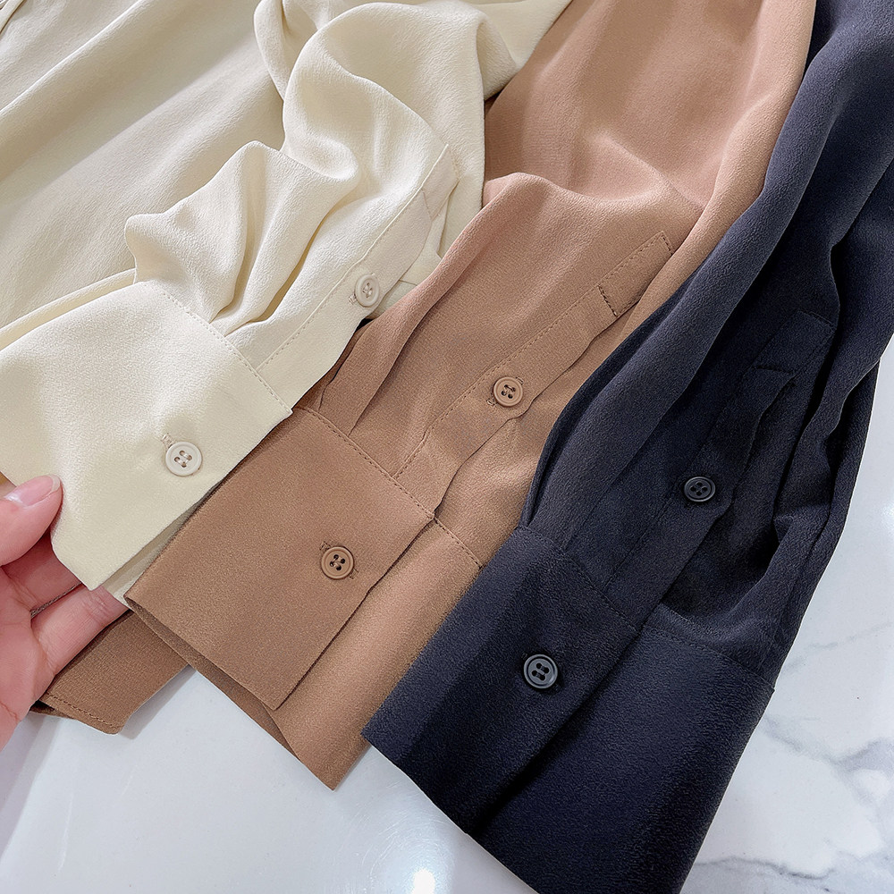 Шелковый лонгслив, осенняя рубашка, V-образный вырез