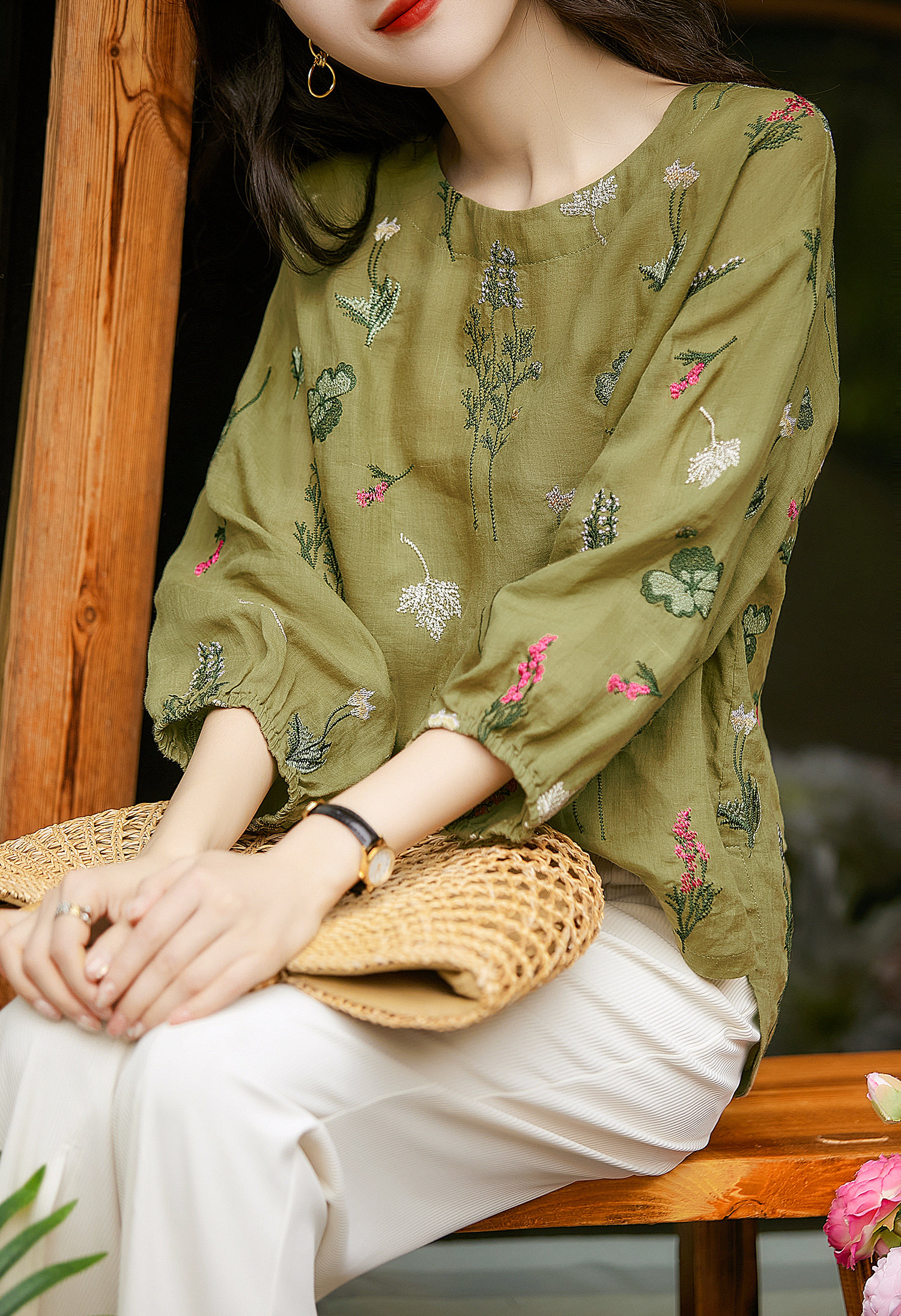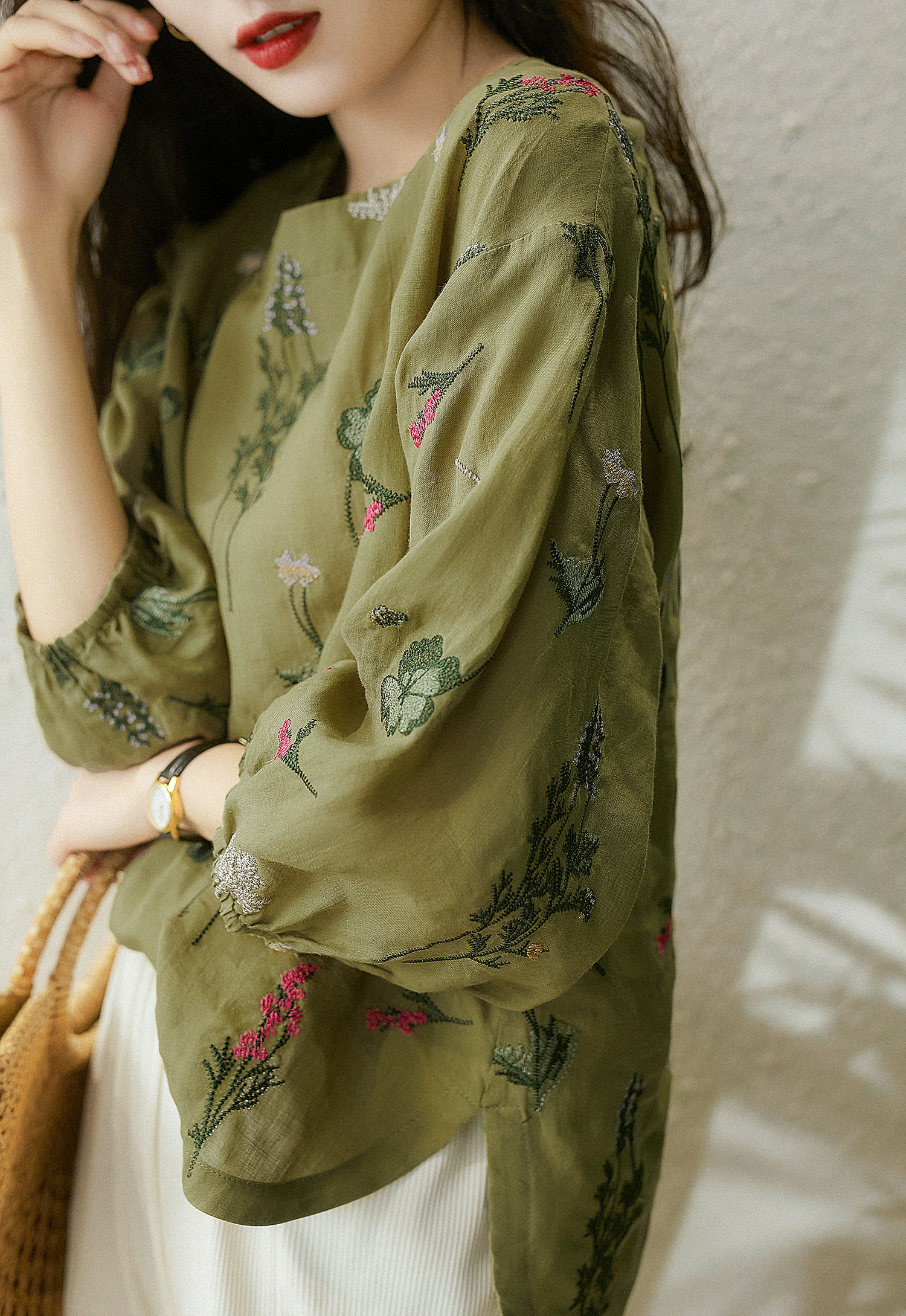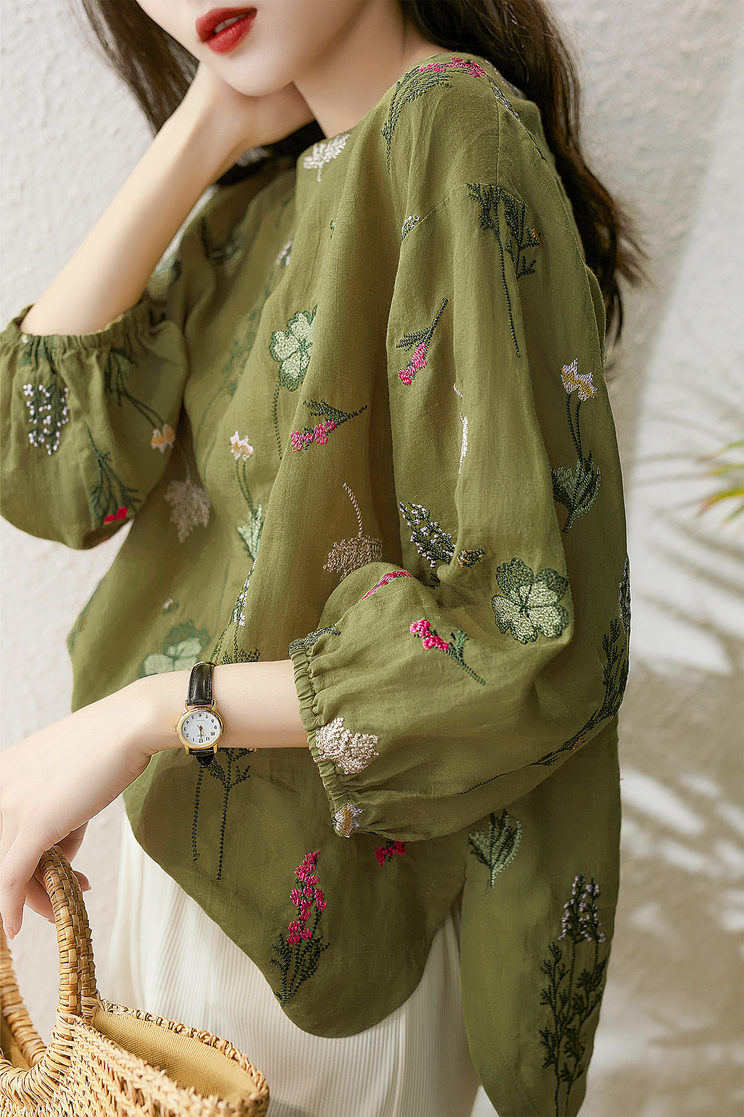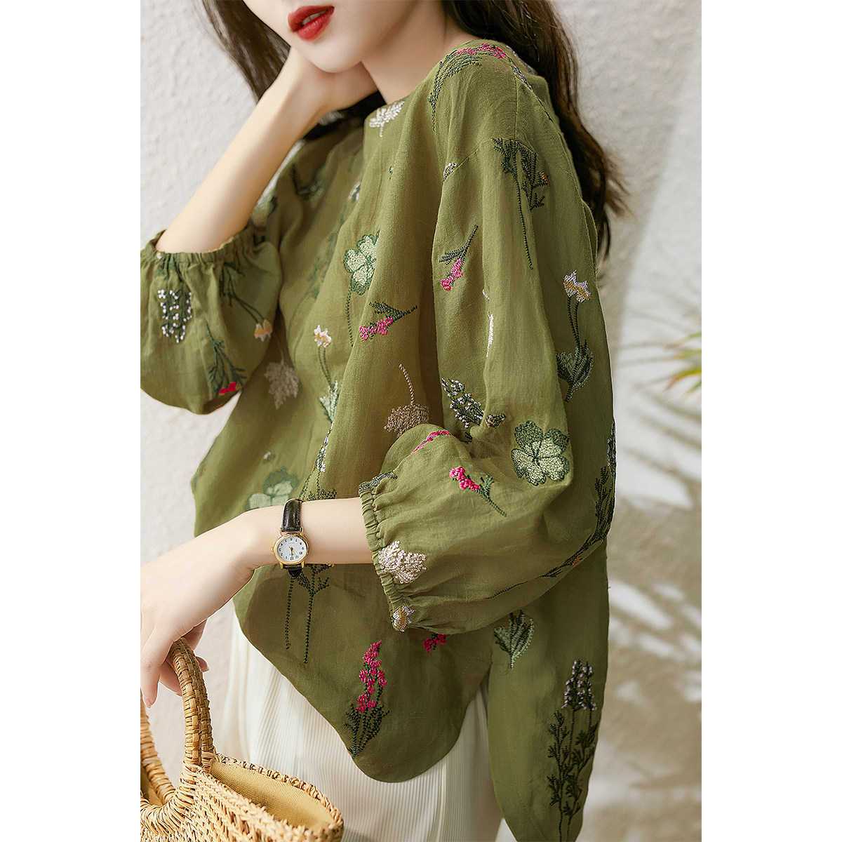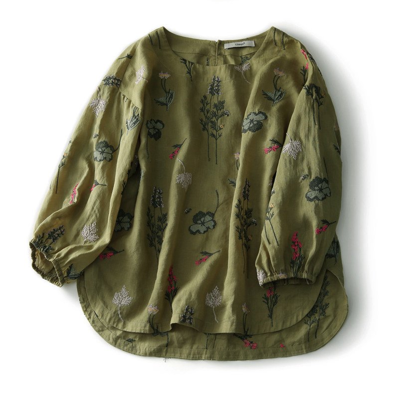 の [xyf380244ag] Сяхан павильон тяжелая промышленность изысканная вышивка выглядит как маленькая и свободная воротника маленькая топ -девушка