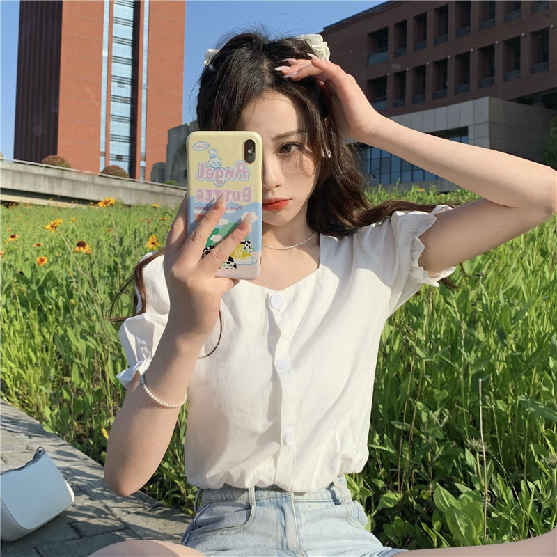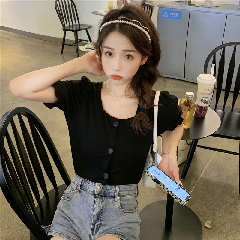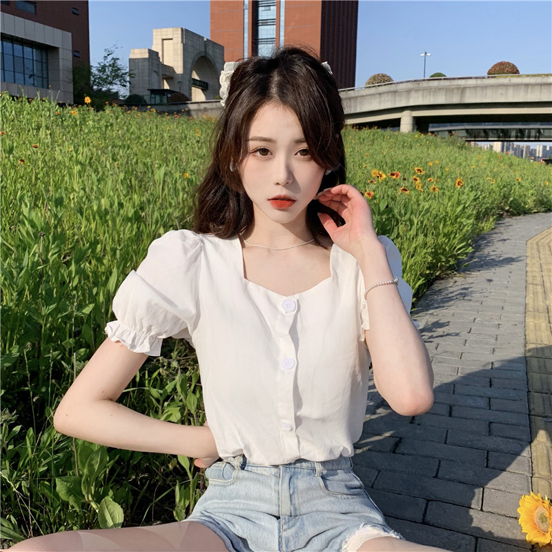 Короткая рубашка, коллекция 2023, французский стиль, короткий рукав, большой размер, квадратный вырез