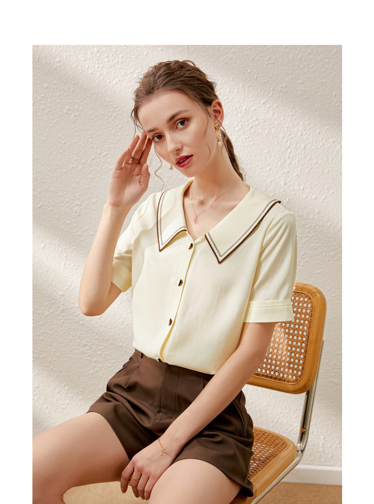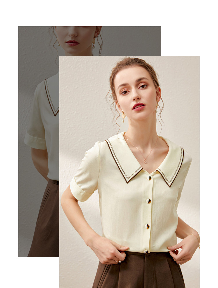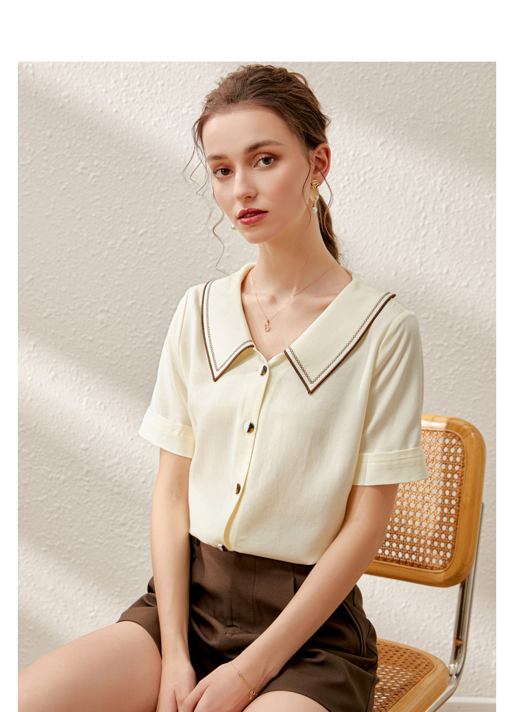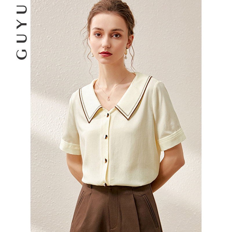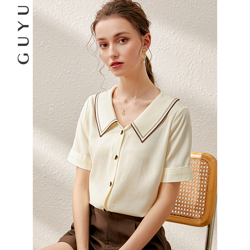 Летняя дизайнерская модная ретро рубашка, французский стиль, короткий рукав, тренд сезона