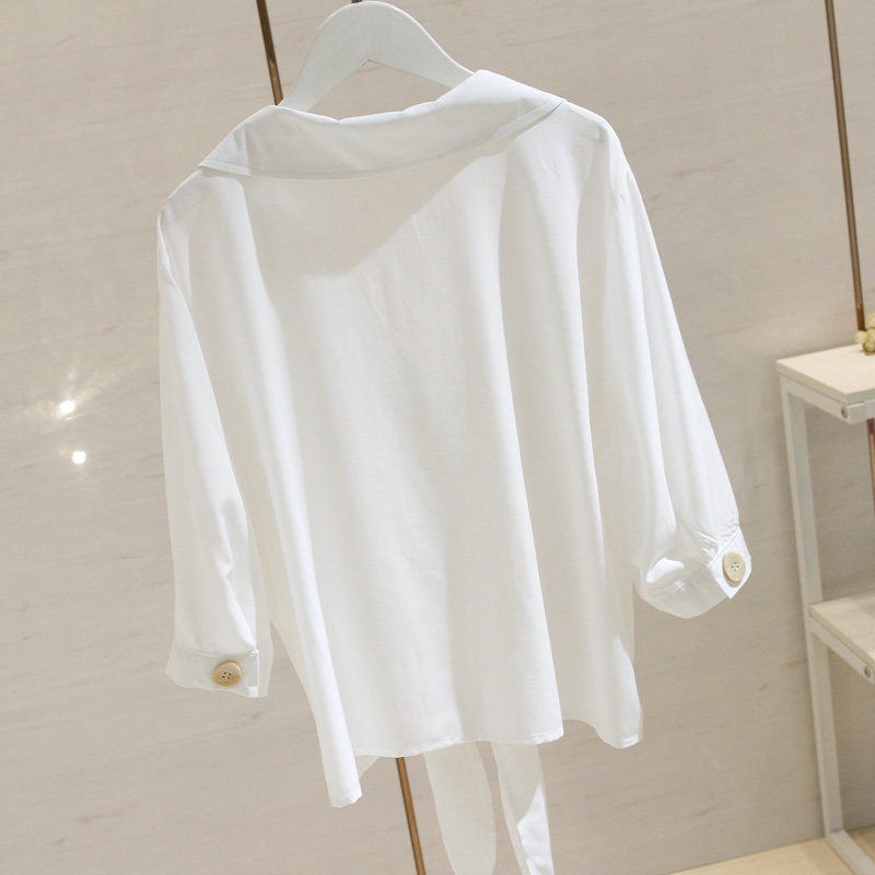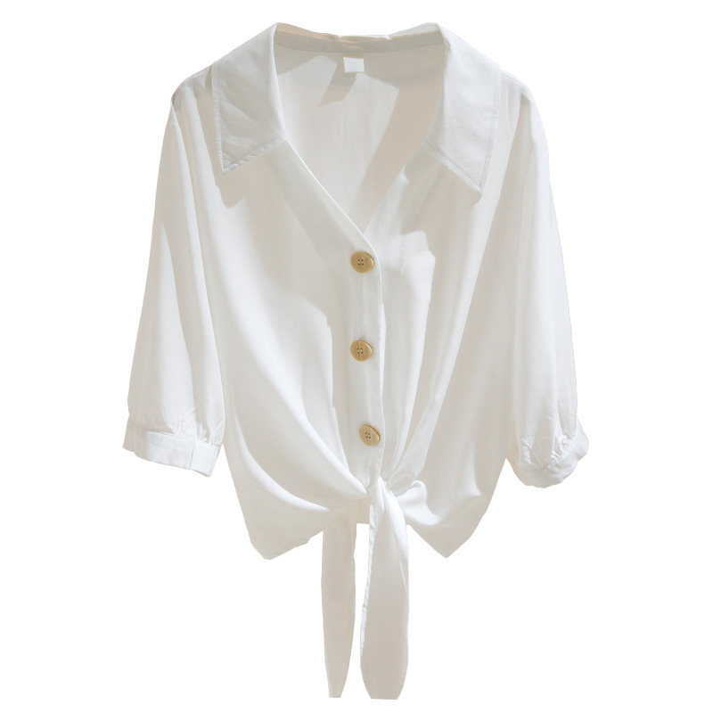 Белая летняя короткая рубашка, Гонконг, V-образный вырез, в корейском стиле, свободный крой, защита от солнца