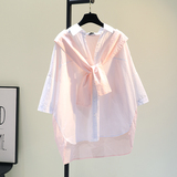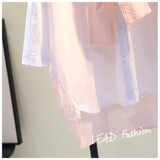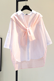 Розовая летняя рубашка, из хлопка и льна, в корейском стиле, оверсайз