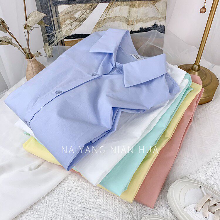 Хлопковая дизайнерская рубашка, футболка, в корейском стиле, свободный крой, тренд сезона