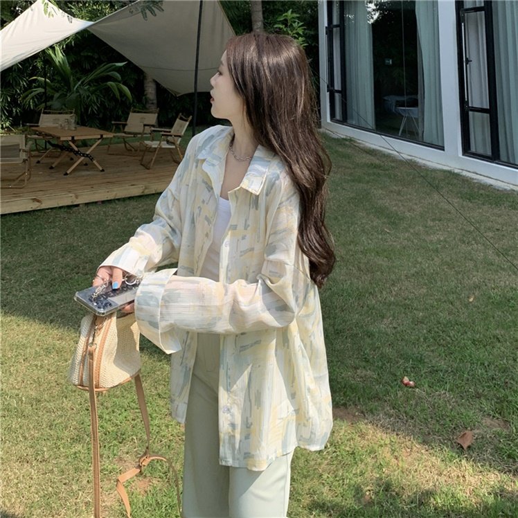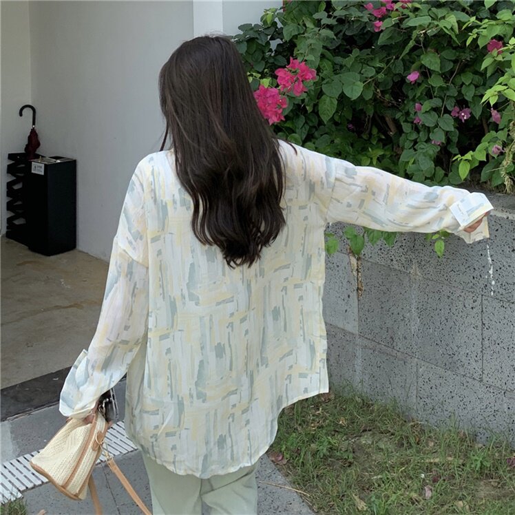 Летняя рубашка, тонкий шифоновый лонгслив, цветочный принт, большой размер, свободный крой, защита от солнца